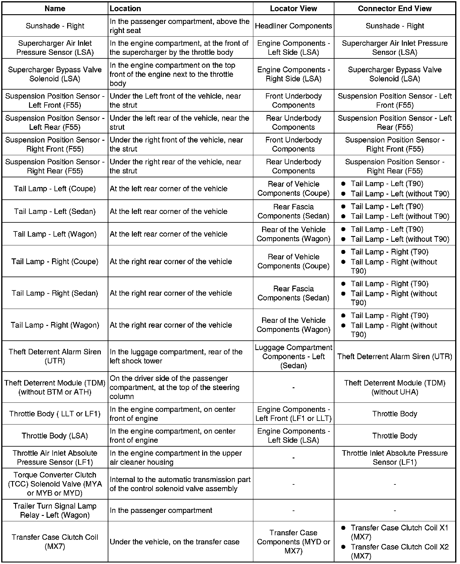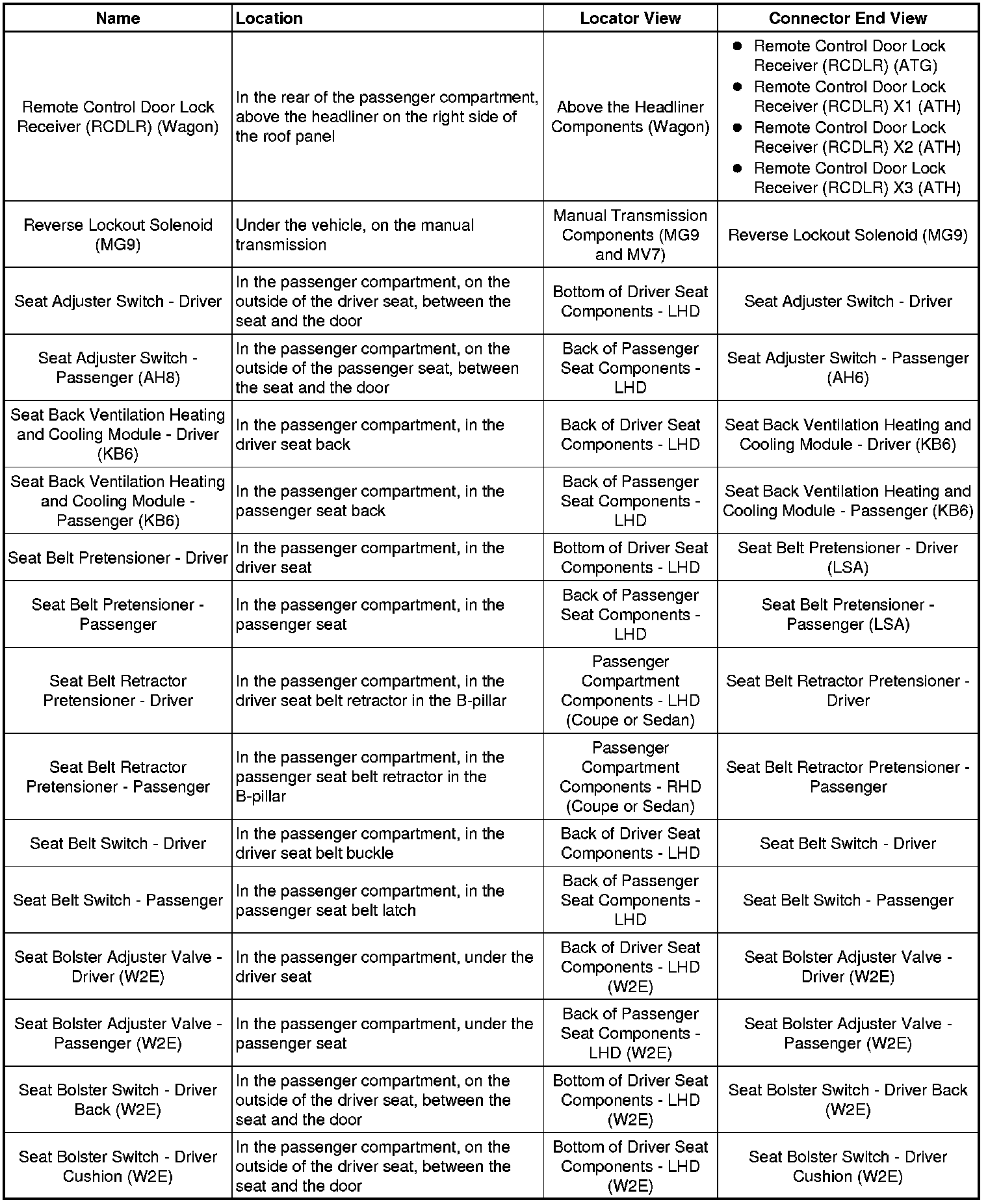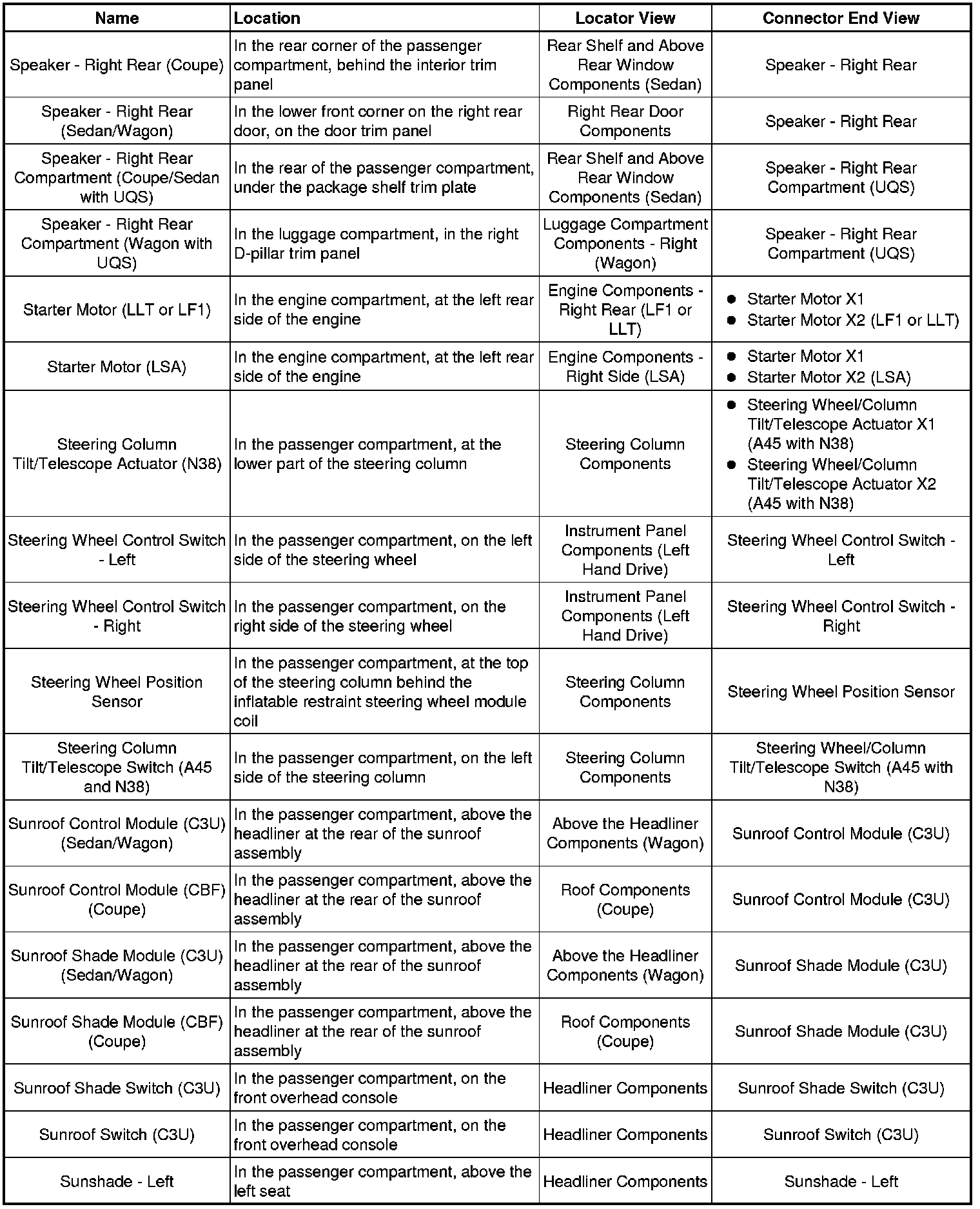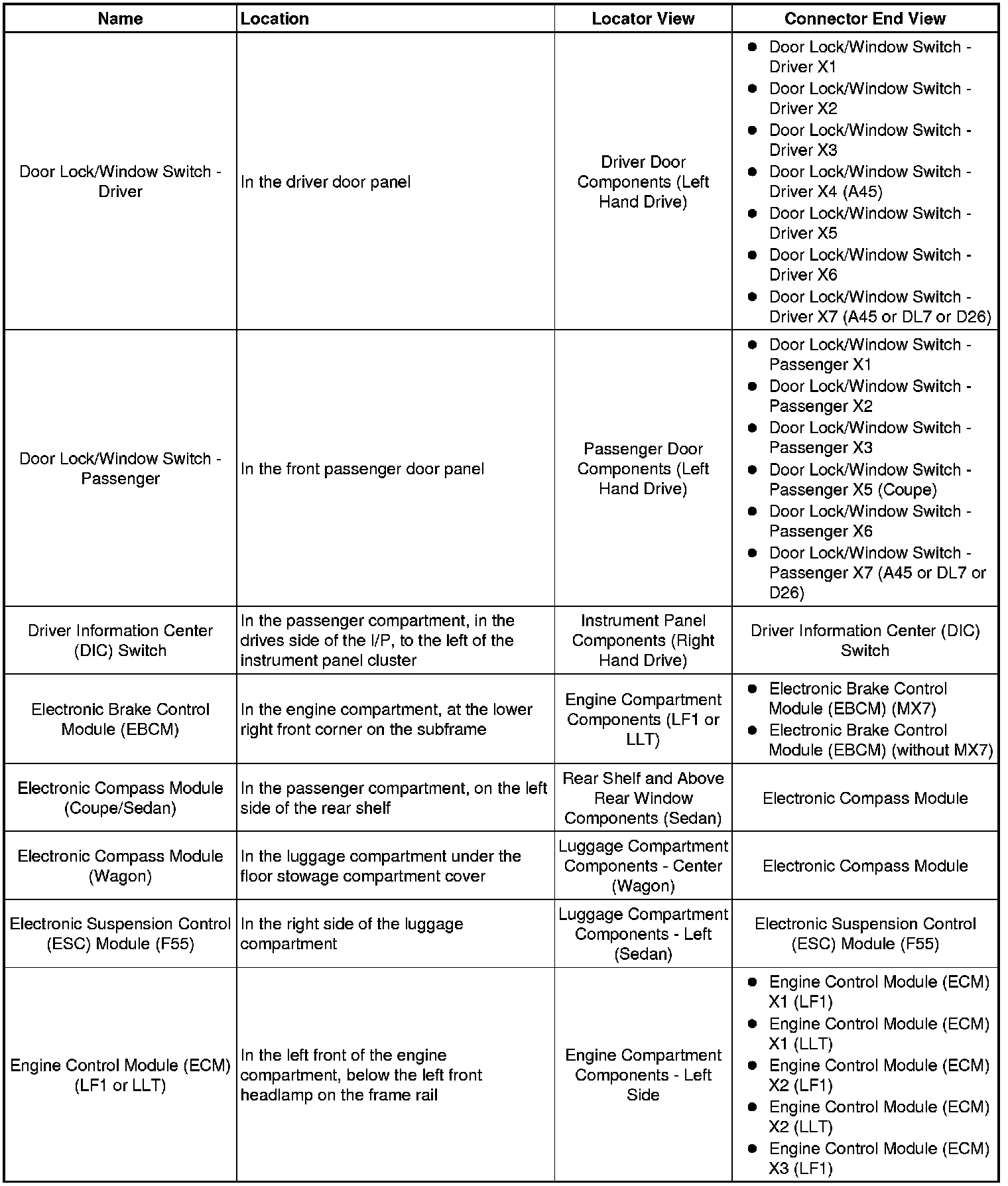 Master Electrical Component List