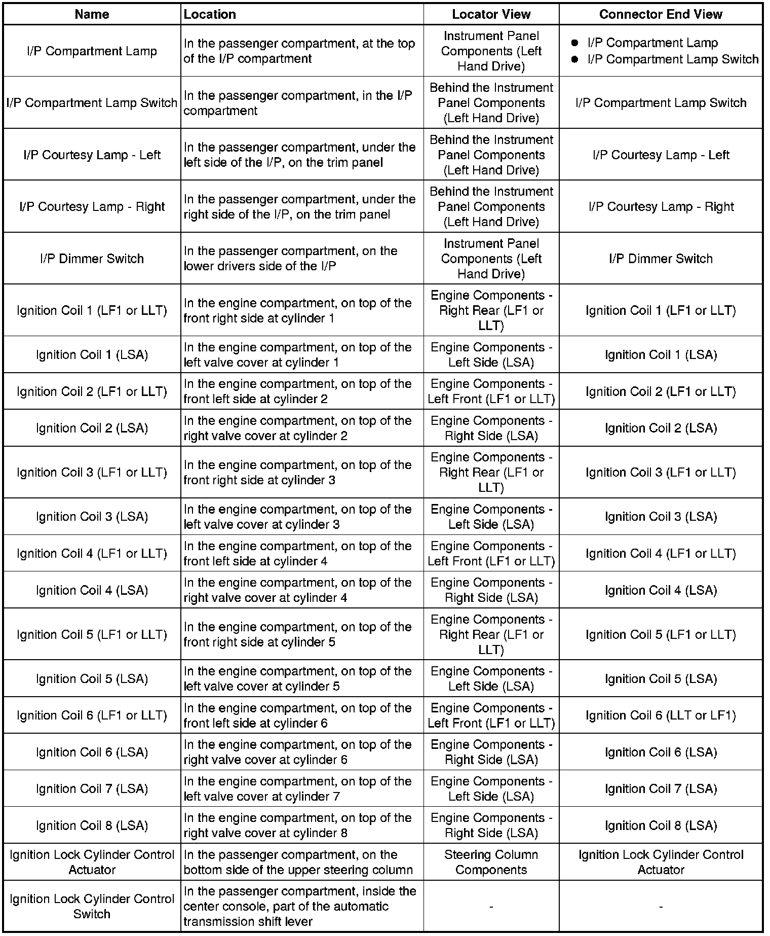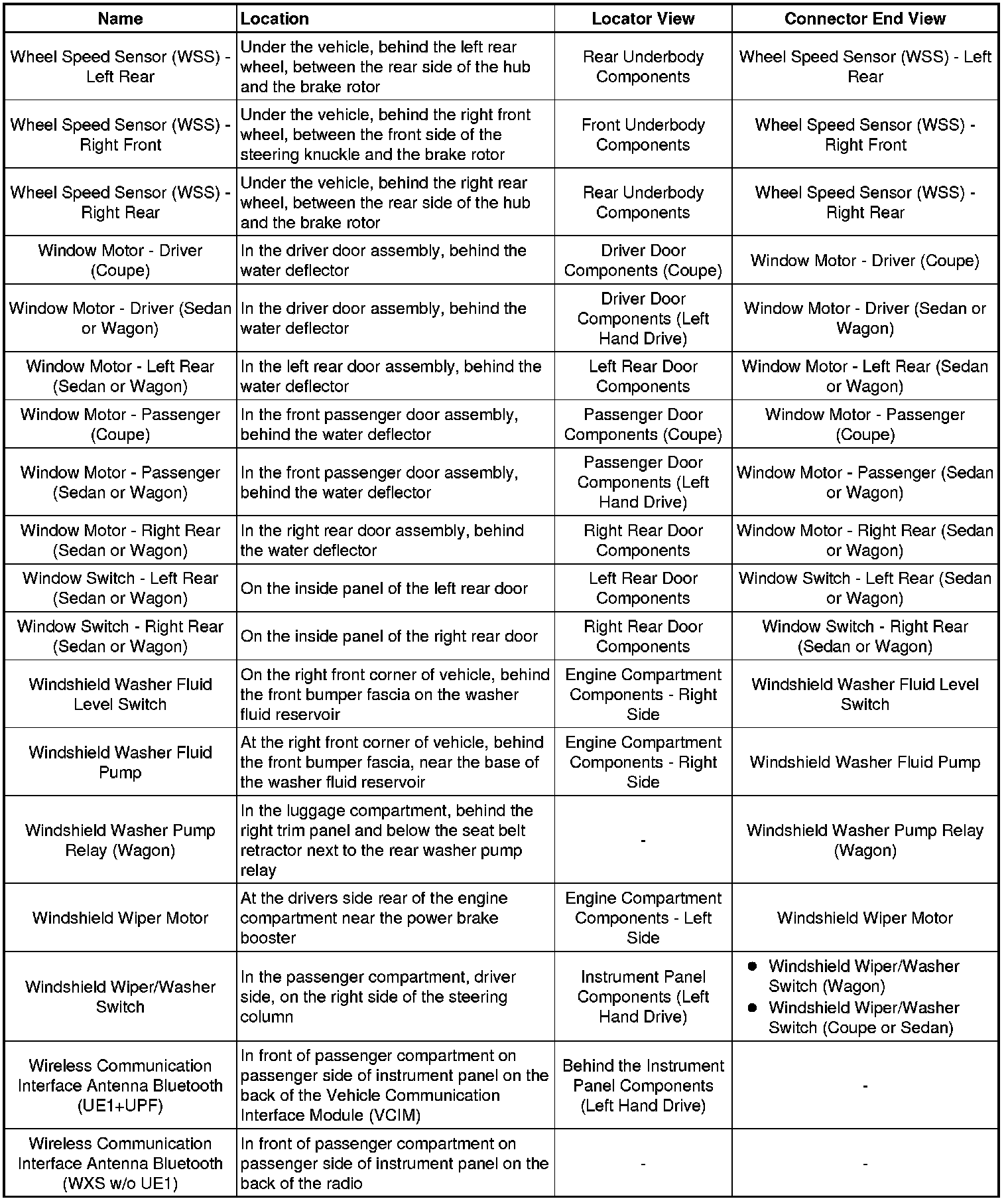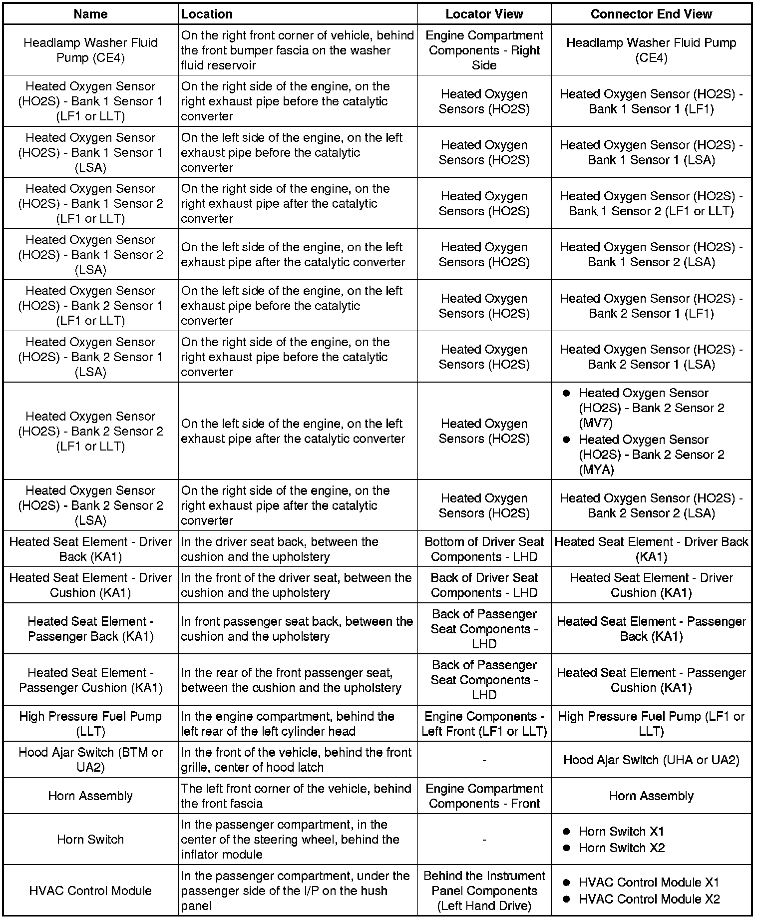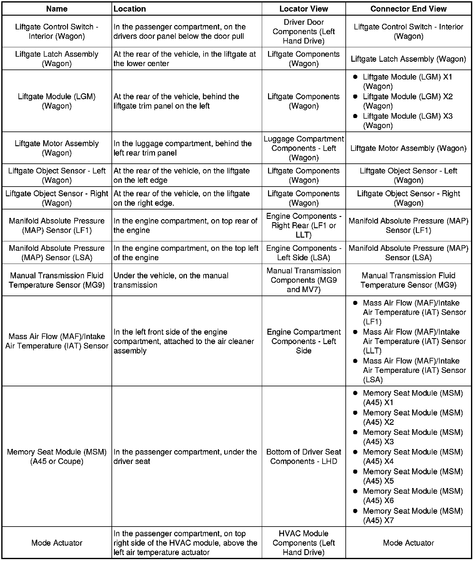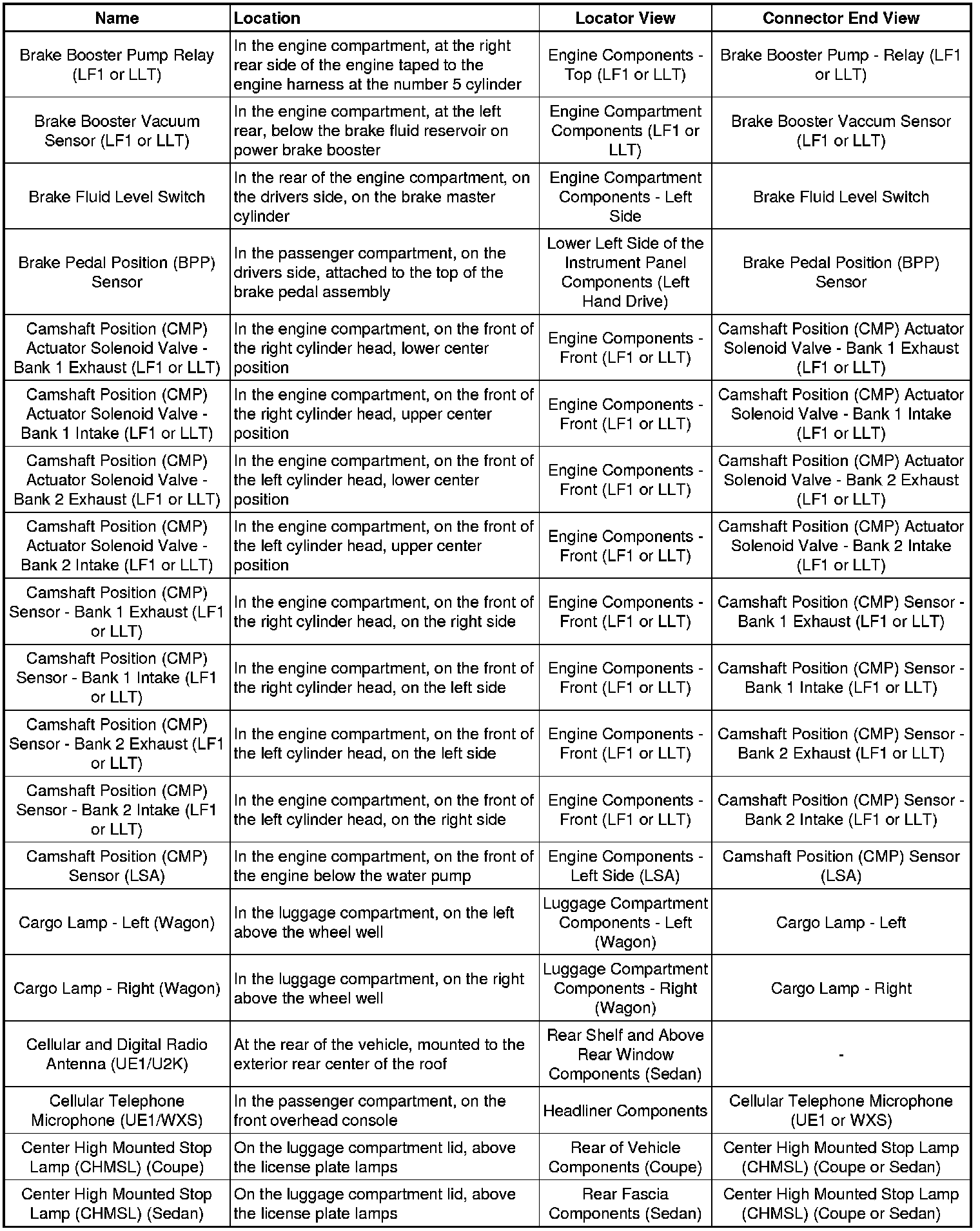 Master Electrical Component List