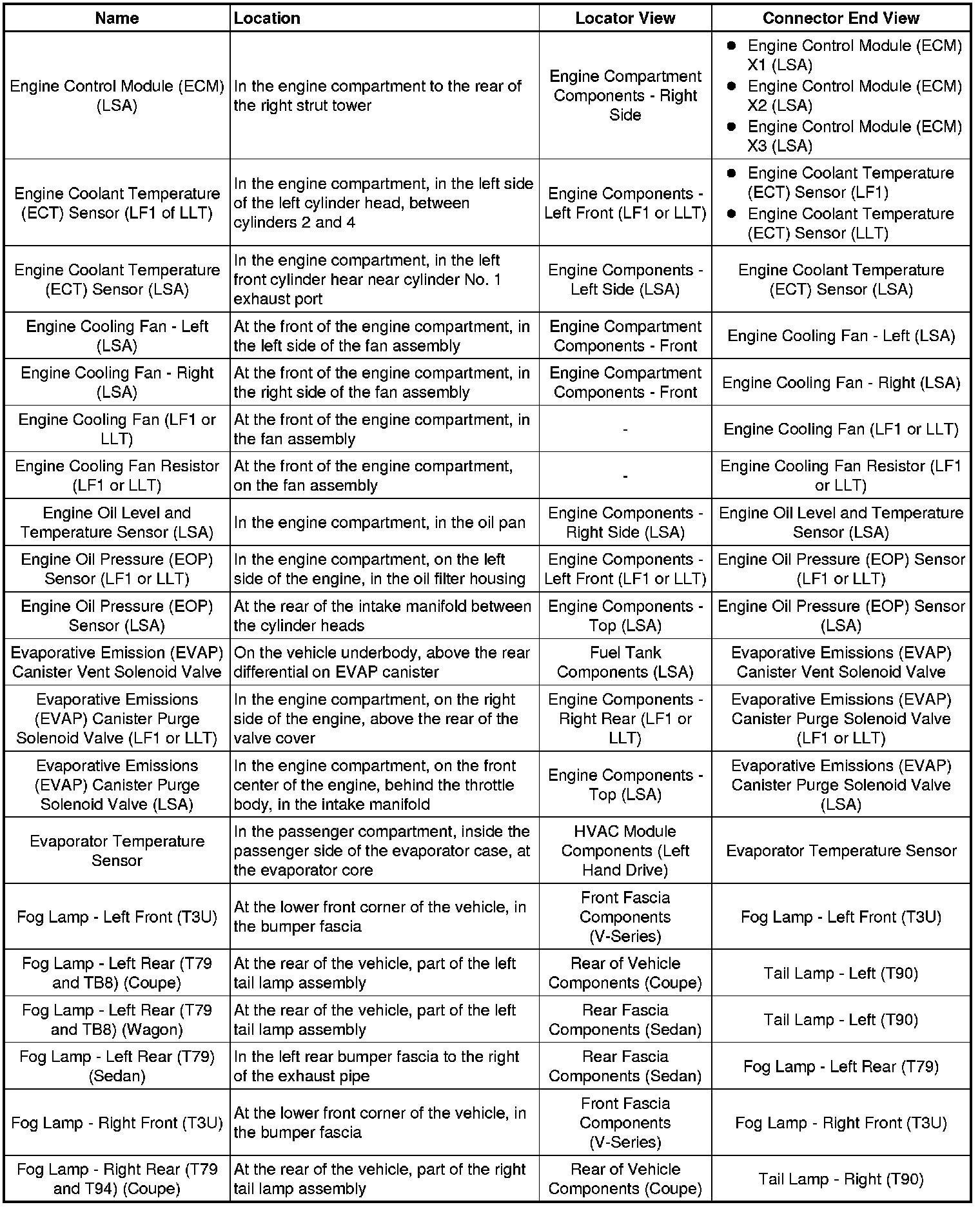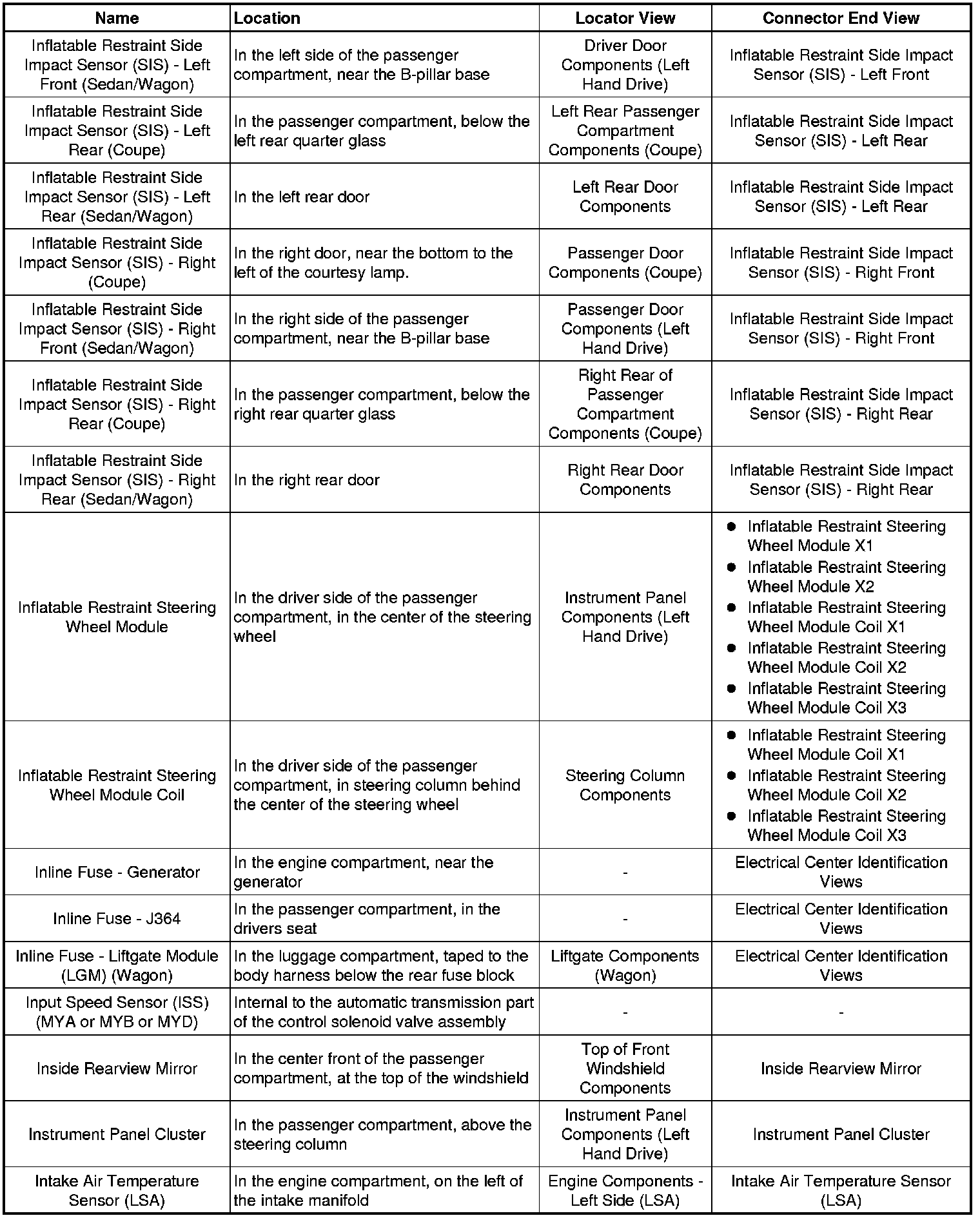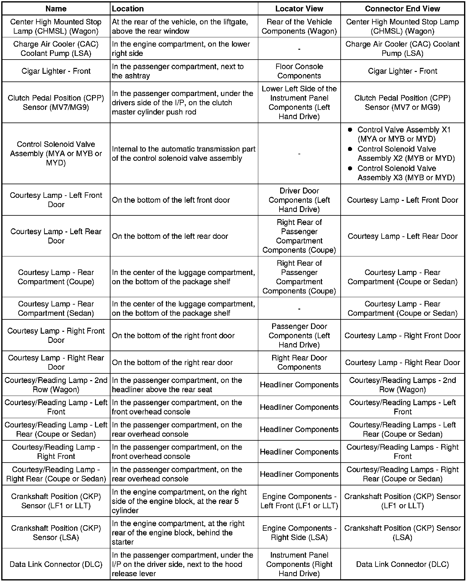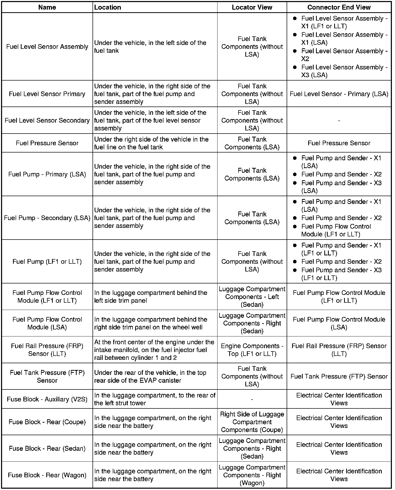 Master Electrical Component List