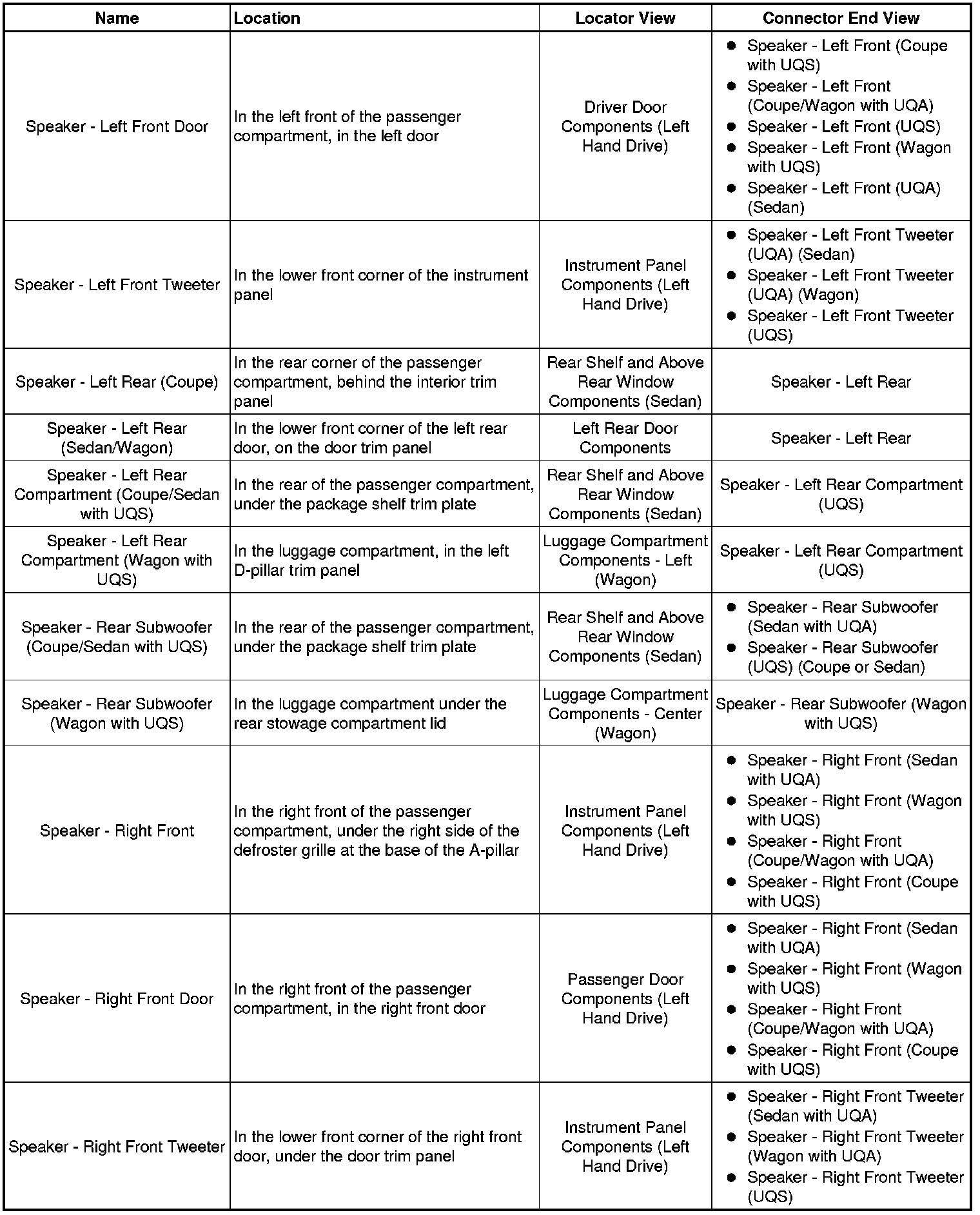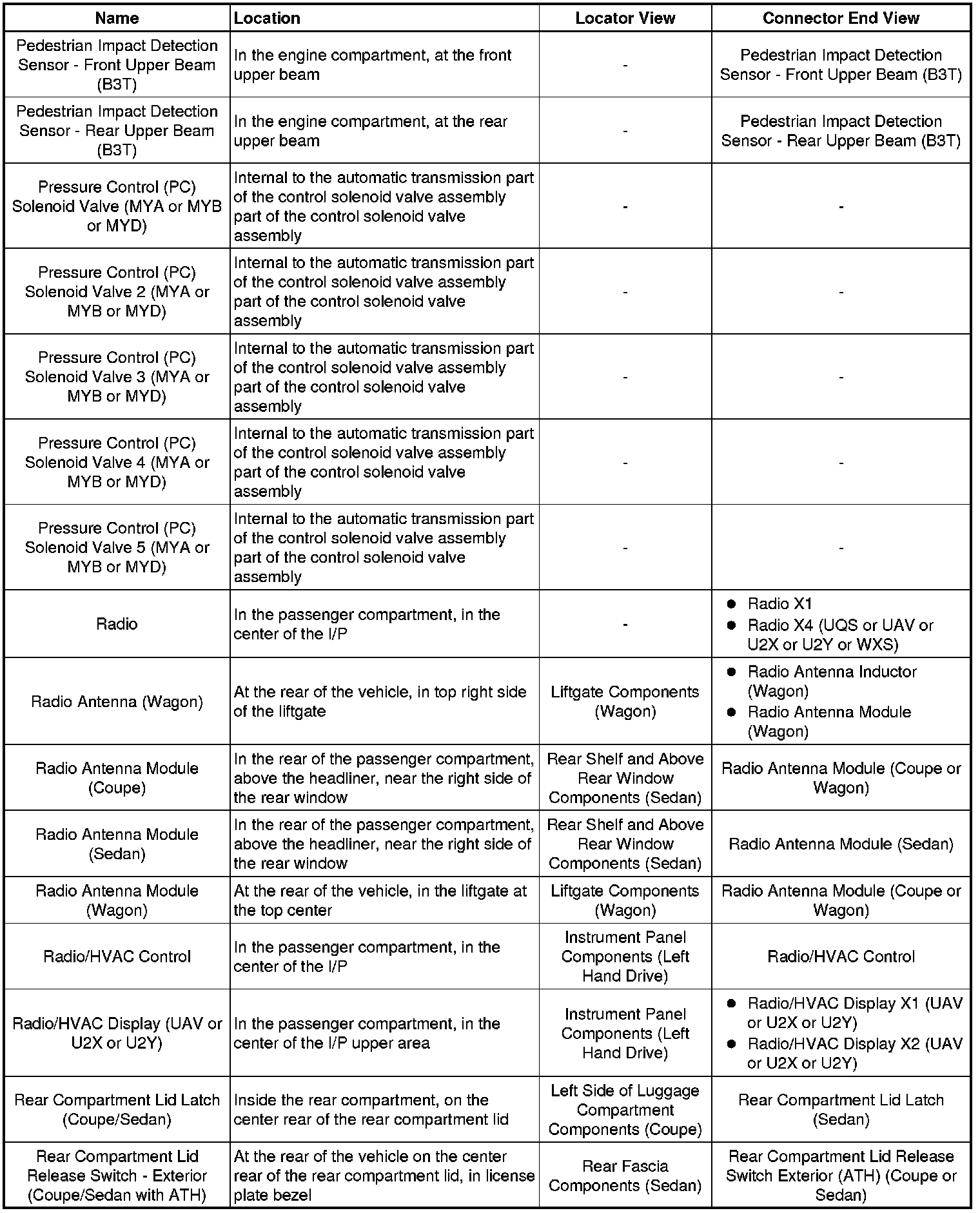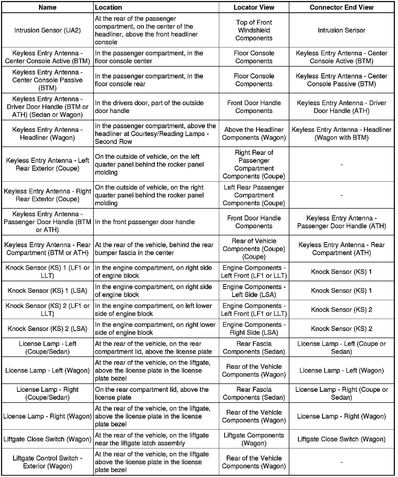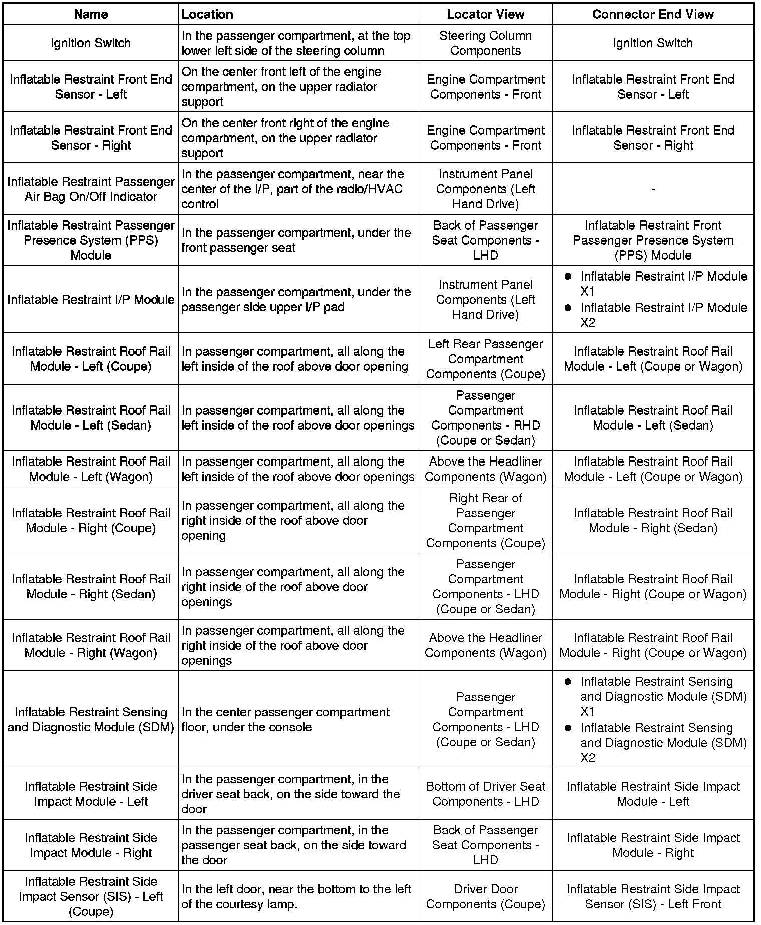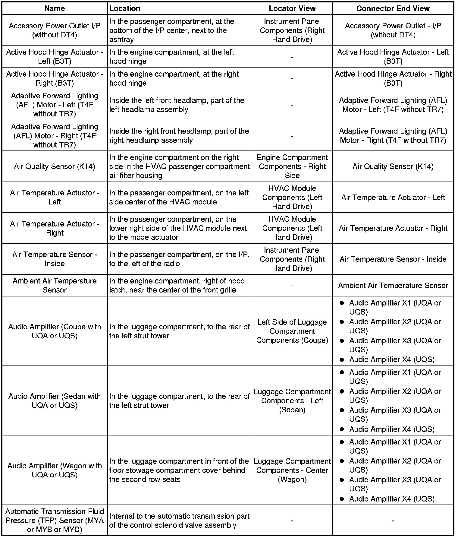 Master Electrical Component List