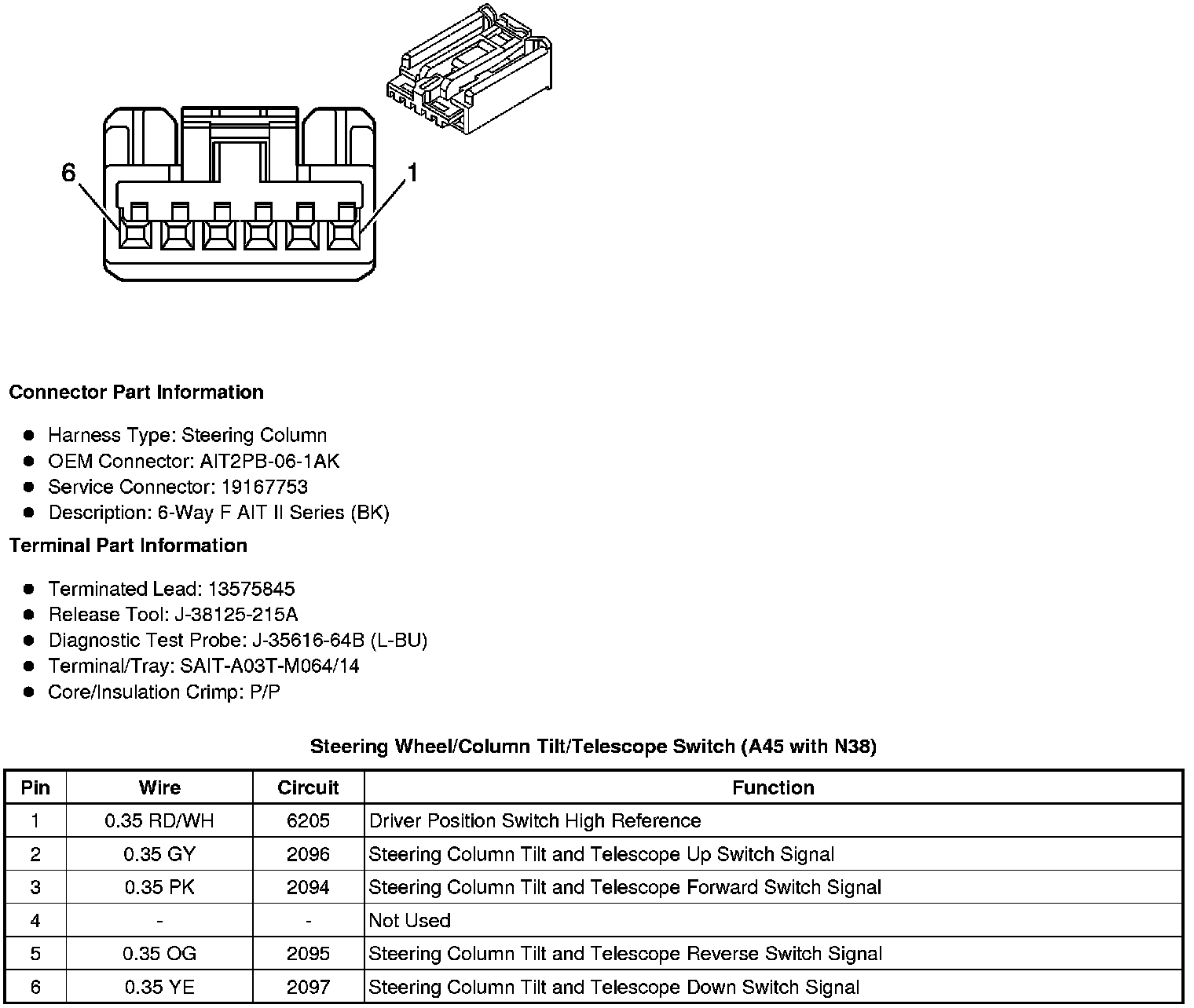 Steering Wheel/Column Tilt/Telescope Switch (A45 with N38)