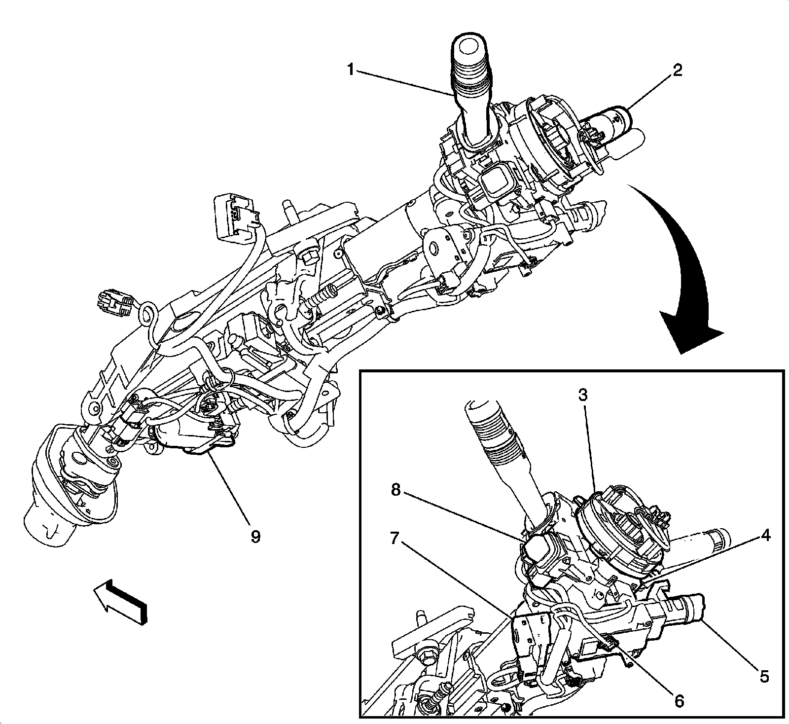 9 - Steering Column Tilt/Telescope Actuator (A45 and N38)