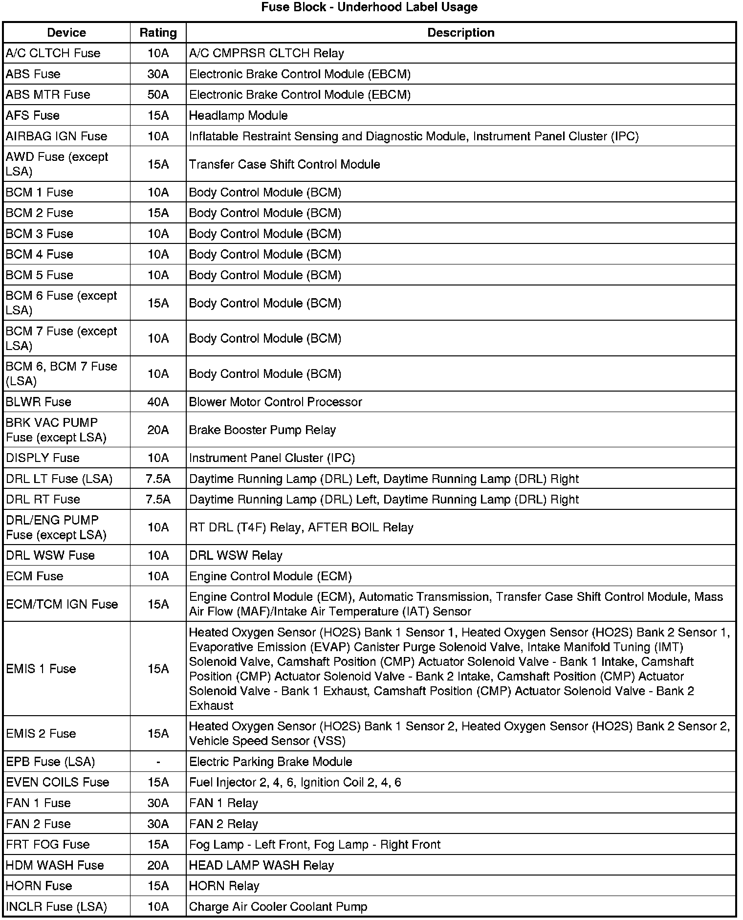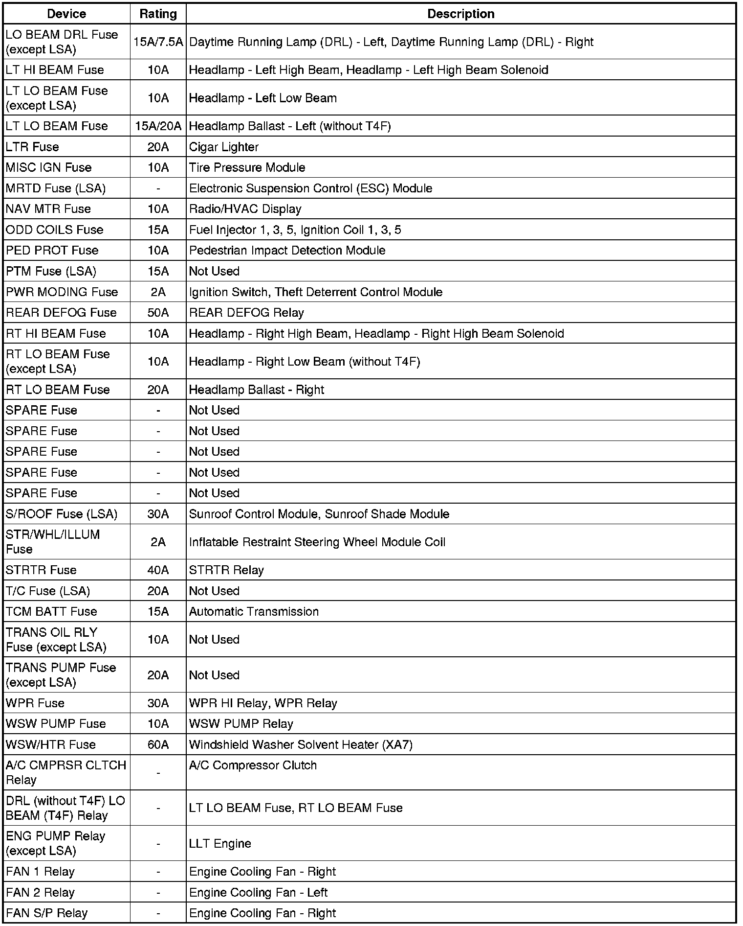 Fuse Block - Underhood Label - Sedan (without LSA)
