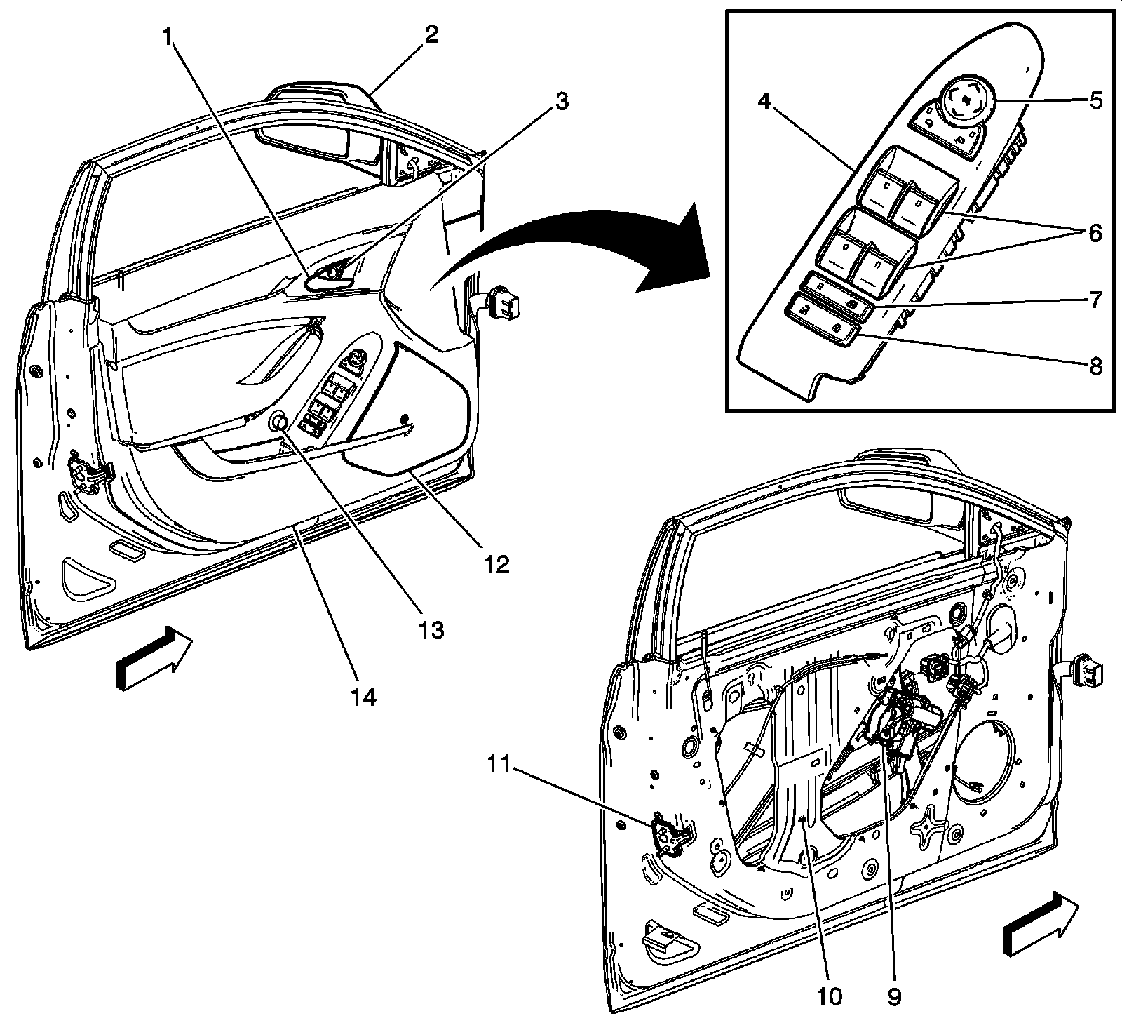 Driver Door Components (Left Hand Drive Sedan or Wagon)