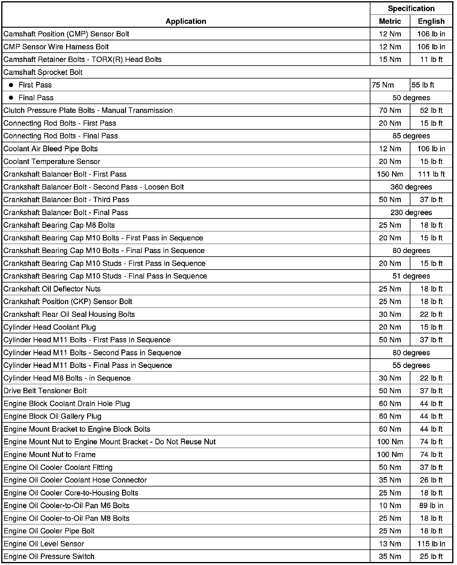 Fastener Tightening Specifications
