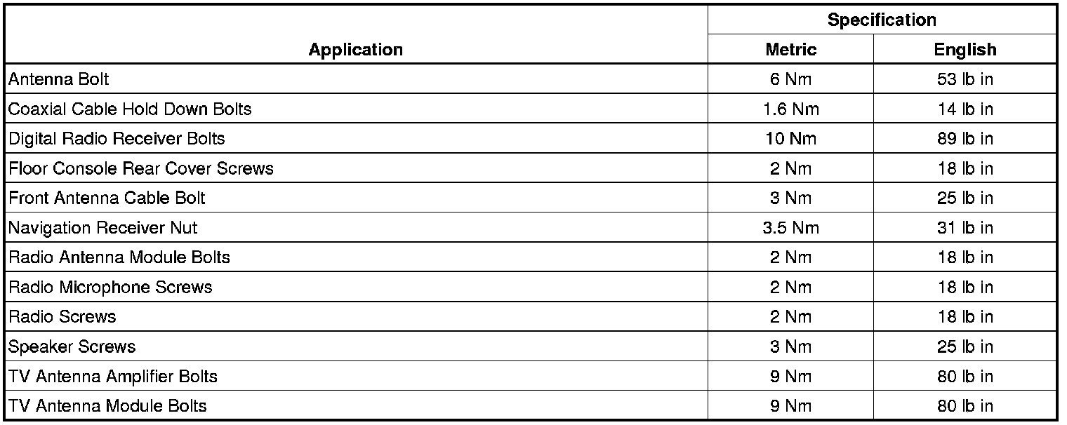 Fastener Tightening Specifications