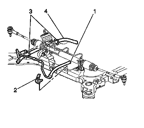 10.Install the clips (3) retaining power steering line (4) along engine frame rail.