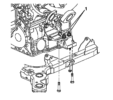 6.Install the fasteners in order to retain the rear transaxle mount (1) to the bracket.