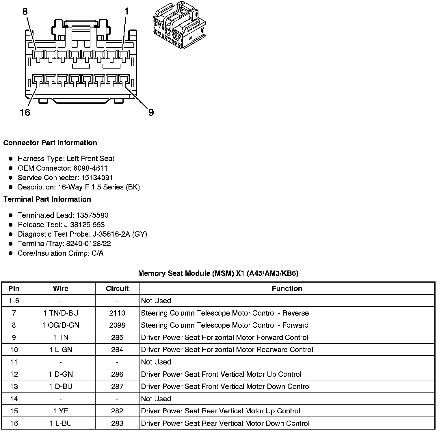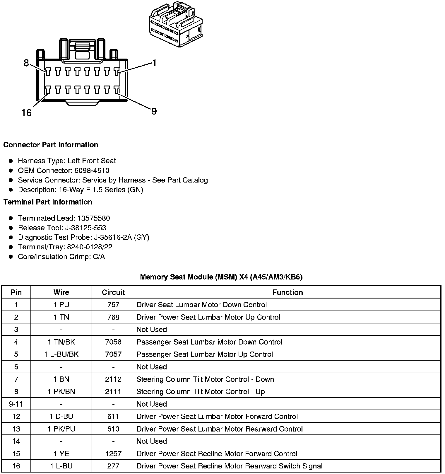 Memory Seat Module (MSM) X1 (A45/AM3/KB6)