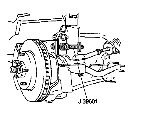 12. Using J 39601 set camber to specification. It may be necessary to remove one of the arms of the J 39601 in order to install it.