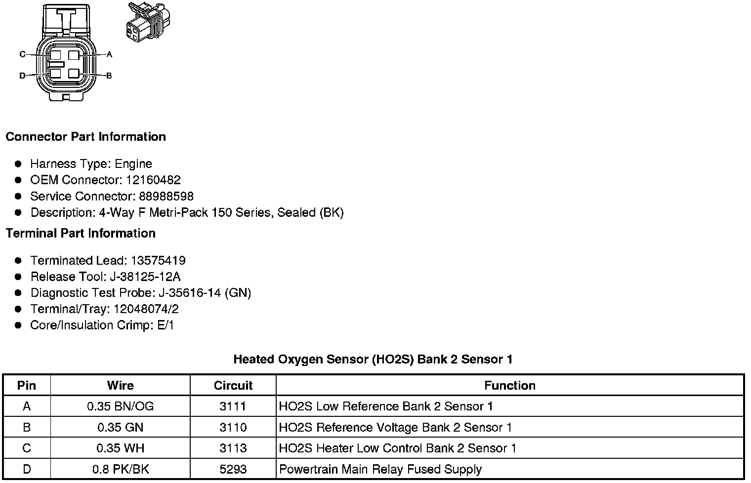 Heated Oxygen Sensor (HO2S) Bank 2 Sensor 1