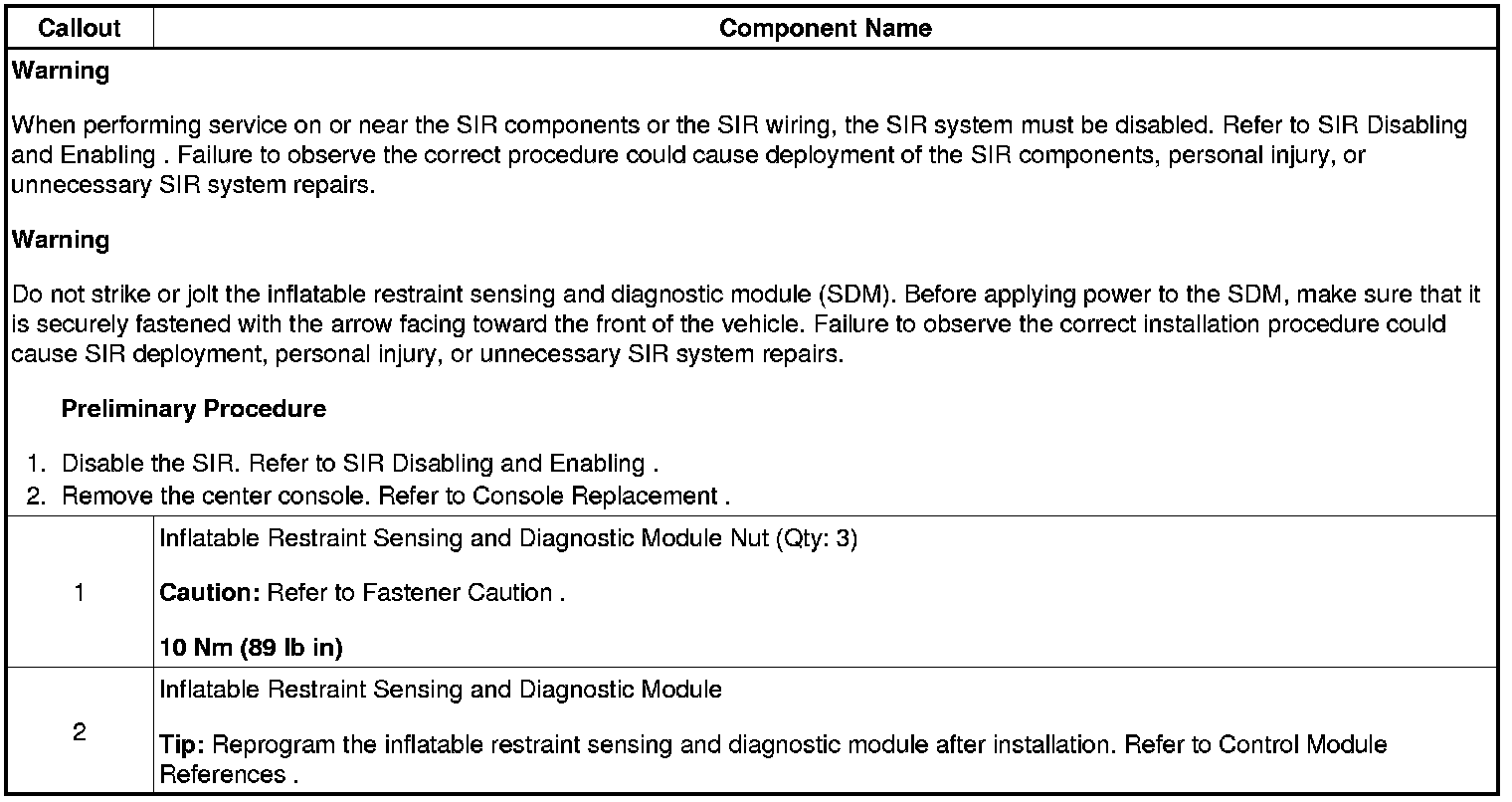 Inflatable Restraint Sensing and Diagnostic Module Replacement