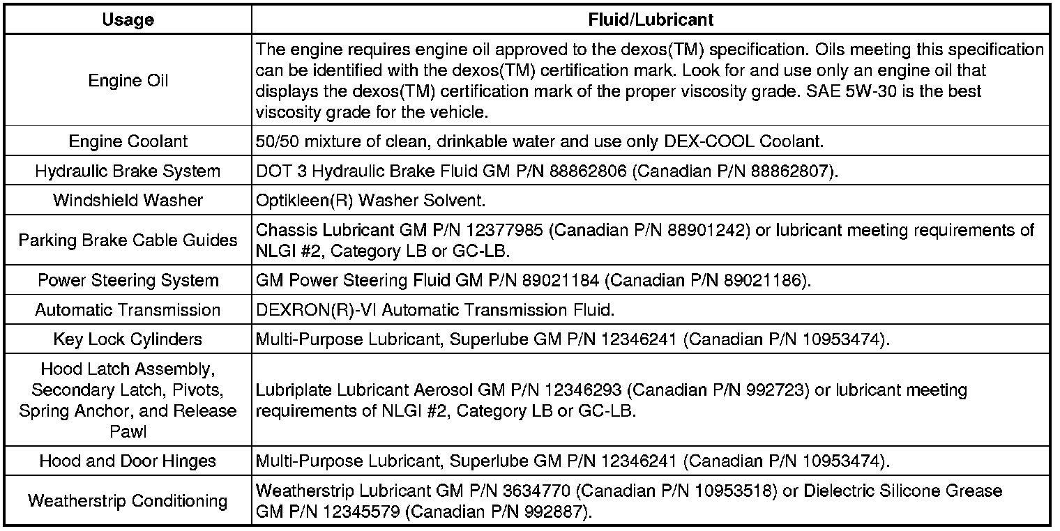 Fluid and Lubricant Recommendations