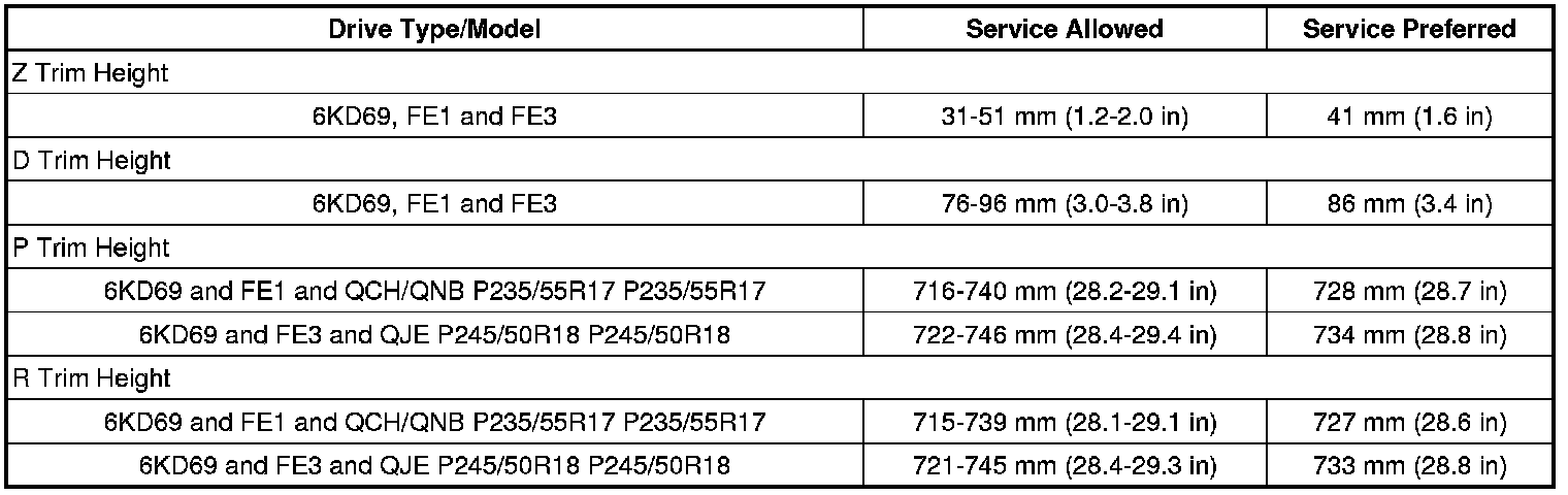Trim Height Specifications