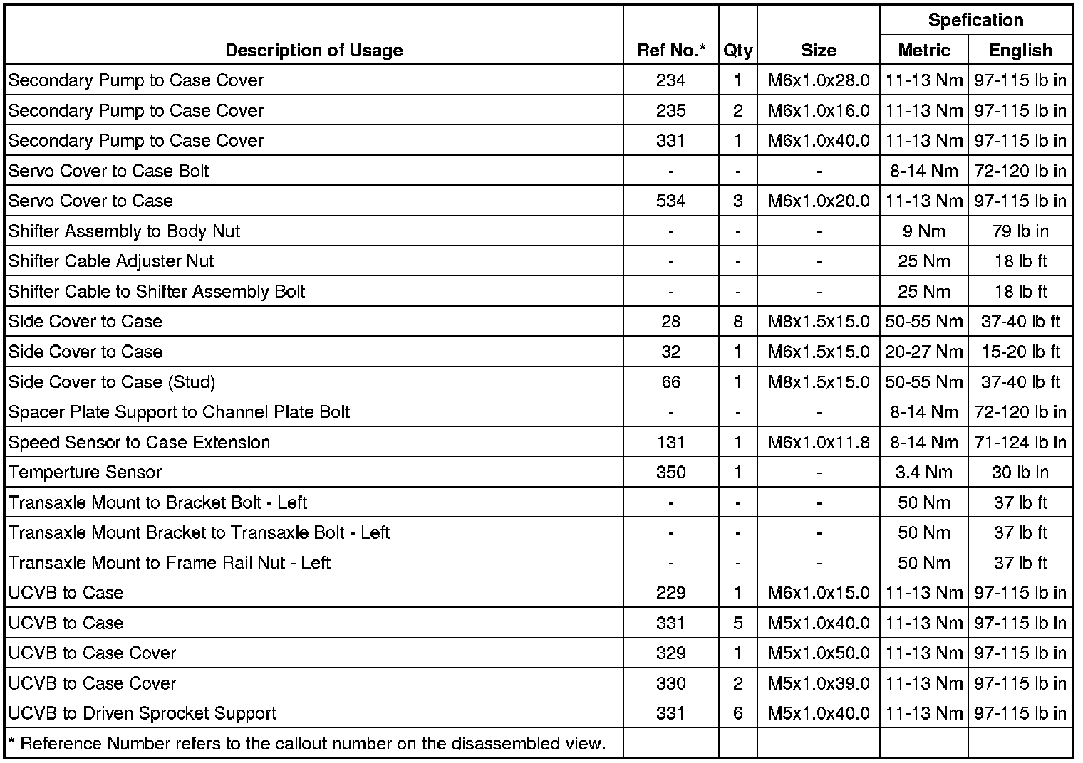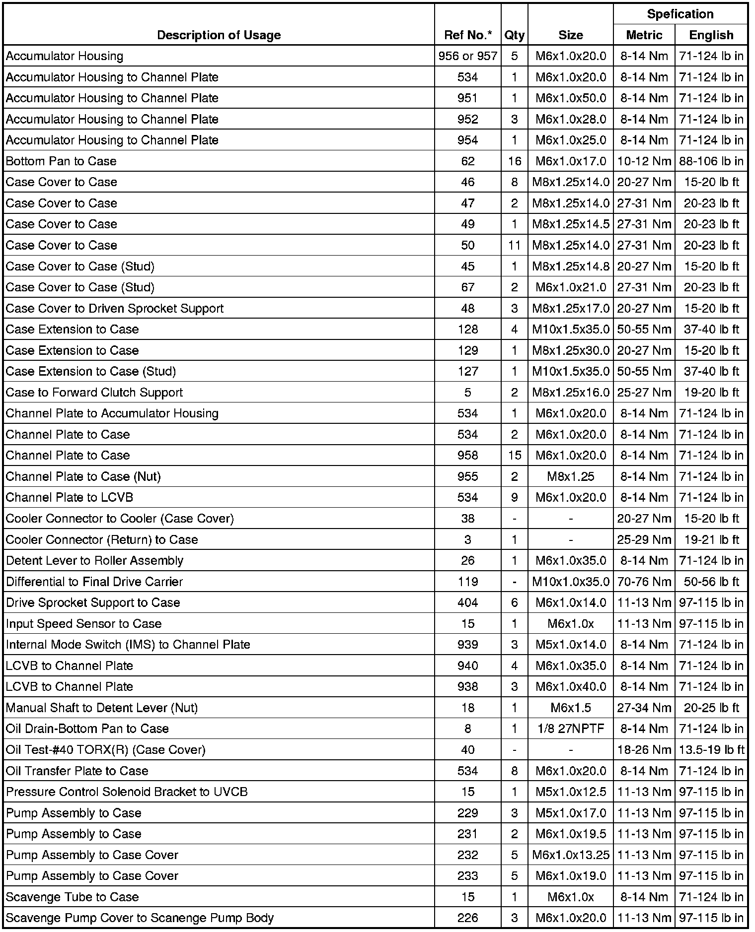Fastener Tightening Specifications