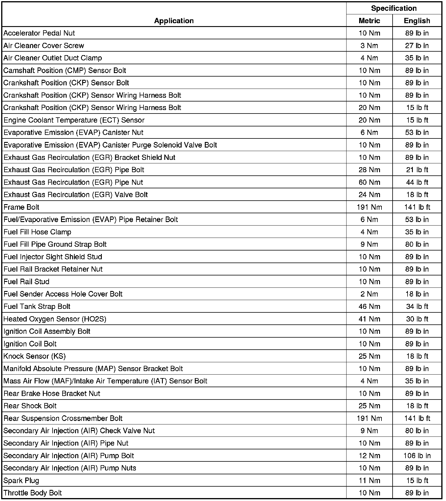 Fastener Tightening Specifications
