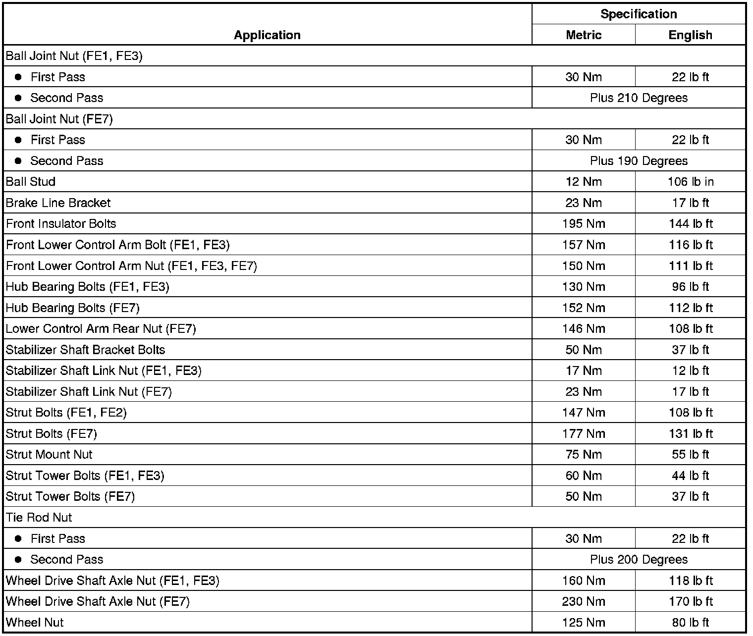 Fastener Tightening Specifications