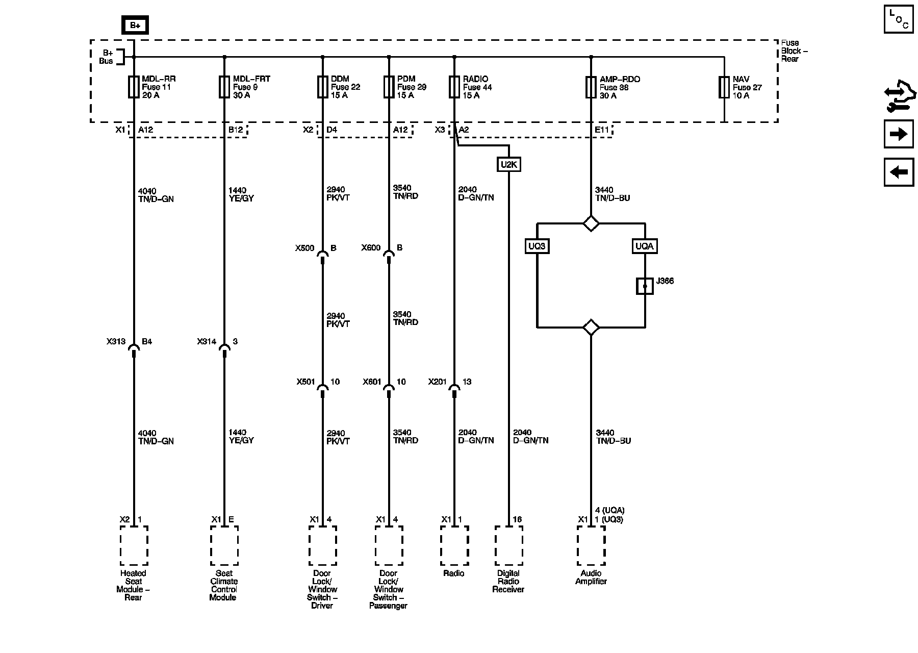 Rear Fuse Block - REAR HTD/SEAT, HTD/COOL, DDM, PDM, RDO, AMP, NAV Fuses