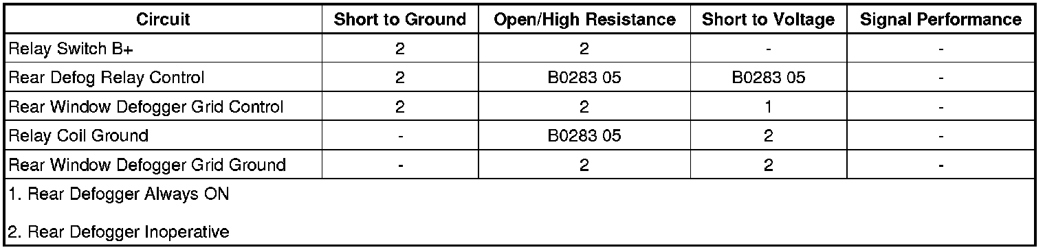 • If the rear window defogger grid does not activate, test the control circuit for an open/high resistance. If the circuit tests normal, test or replace the rear window defogger grid.