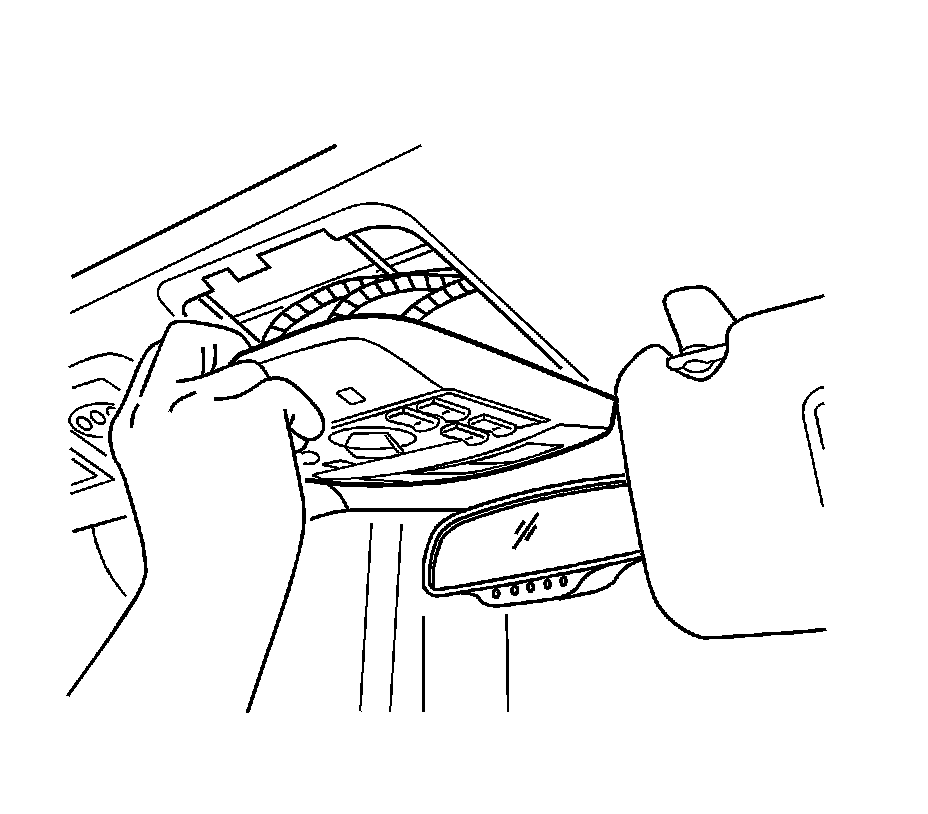 1. Remove the overhead console. Refer to Overhead Console Courtesy Lamp Replacement (Front) (Overhead Console Courtesy Lamp Replacement (Front))Overhead Console Courtesy Lamp Replacement (Rear) (Overhead Console Courtesy Lamp Replacement (Rear)).