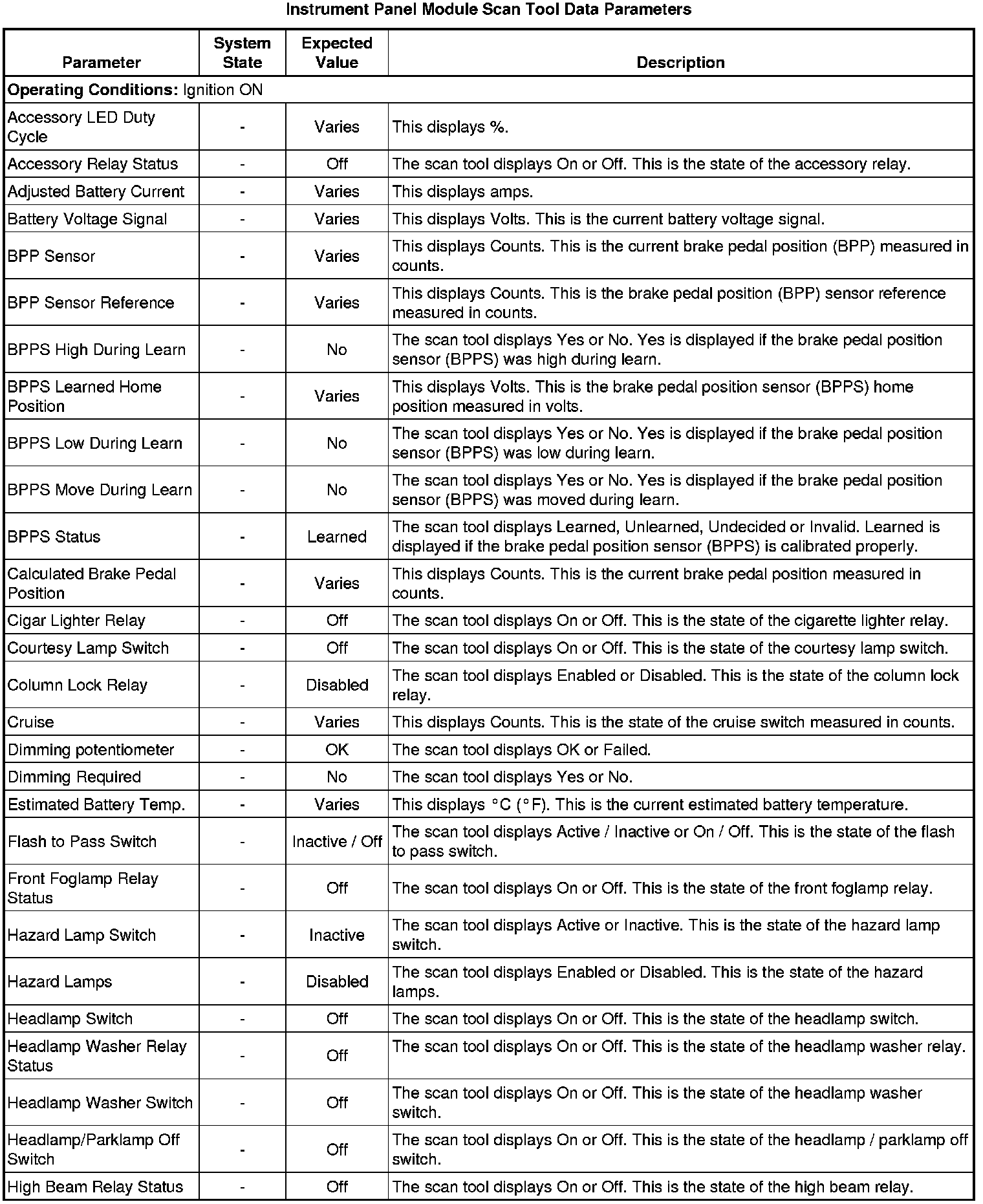 Body Control Module Scan Tool Information