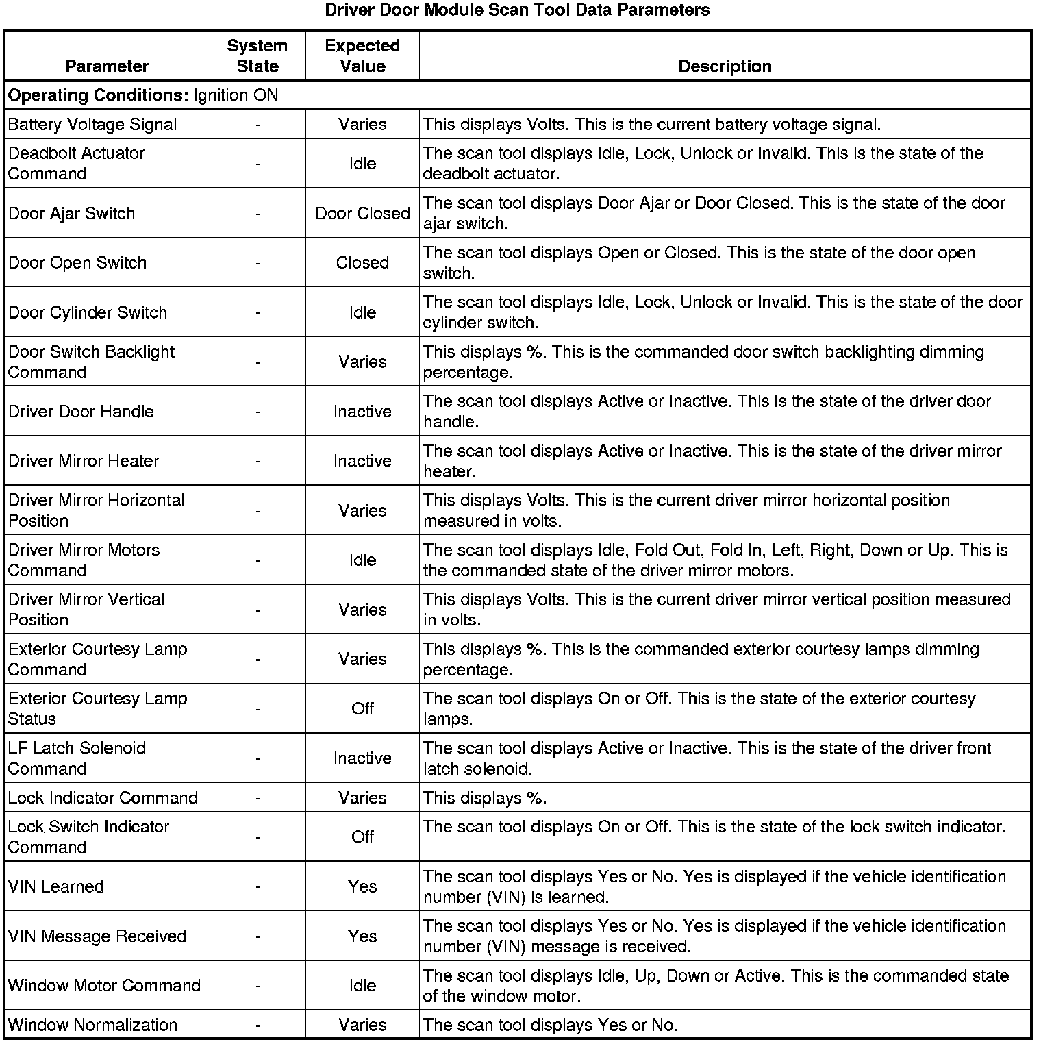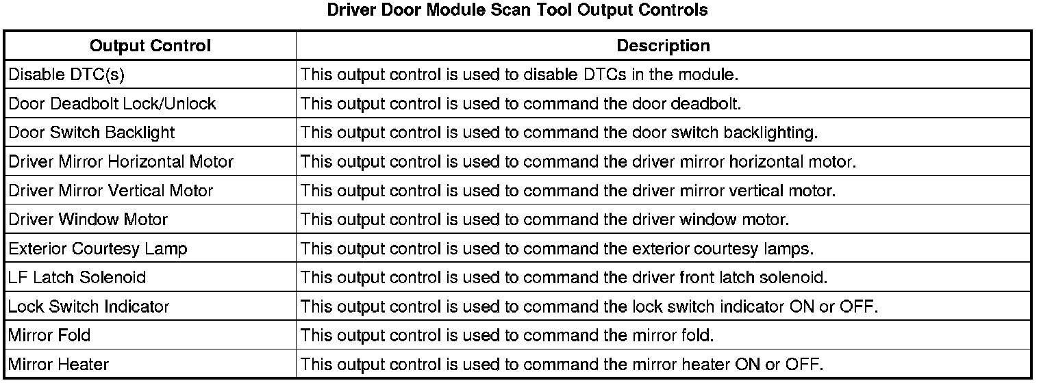 Door Lock Control Module Scan Tool Information (Driver Door Module)