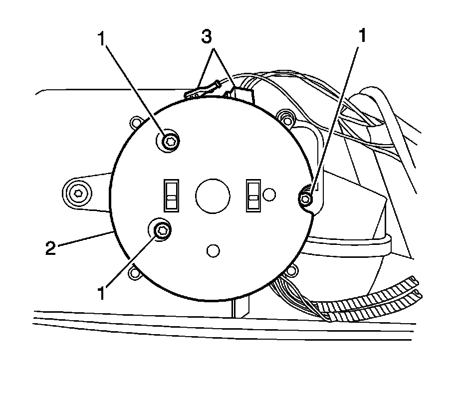 3. Connect the electrical connectors (3) to the mirror and install the mirror motor into the housing.