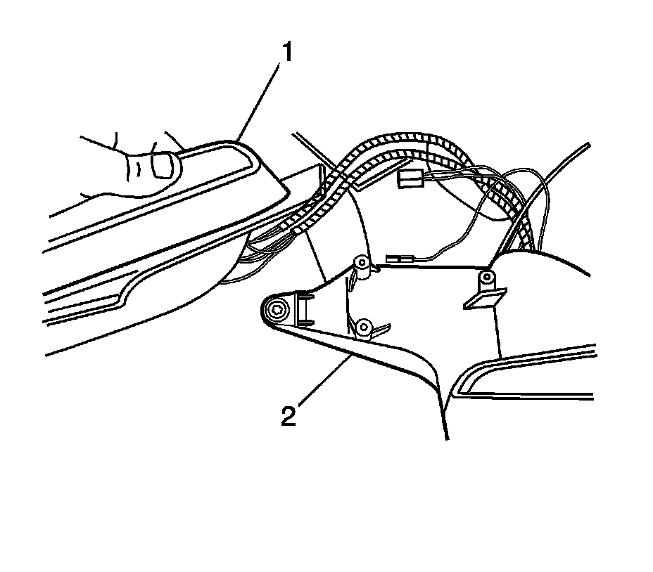 6. Remove the power mirror housing (1) from the mirror support (2).
