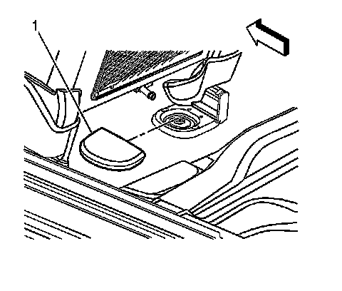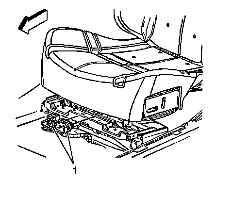 2. Move the front seat forward in order to access the front seat track trim cover (1).