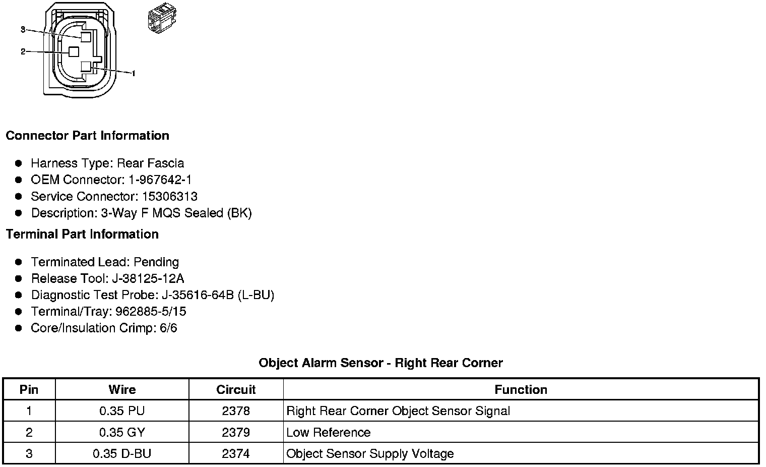 Object Alarm Sensor - Right Rear Corner