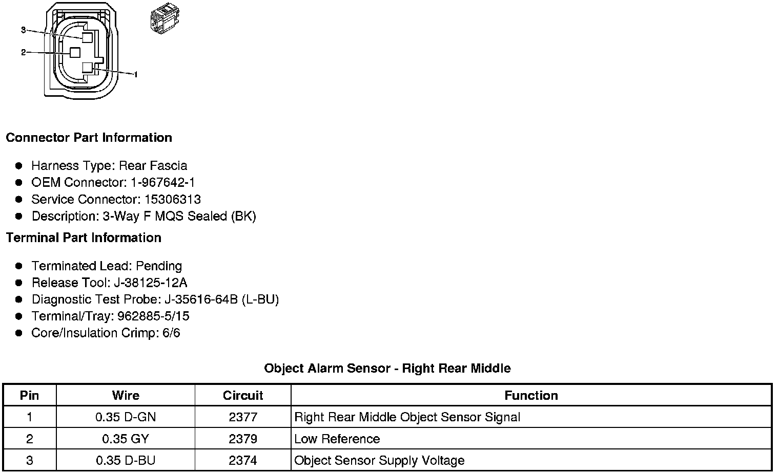 Object Alarm Sensor - Right Rear Middle