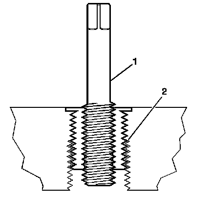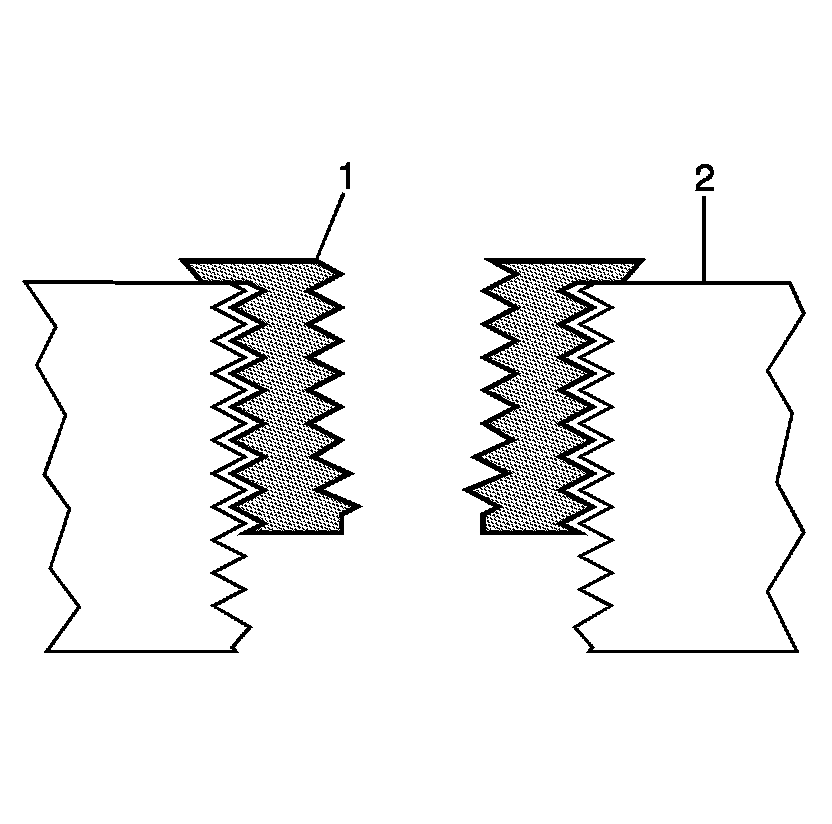 14. Inspect the insert (1) for proper installation (2) into the tapped hole.