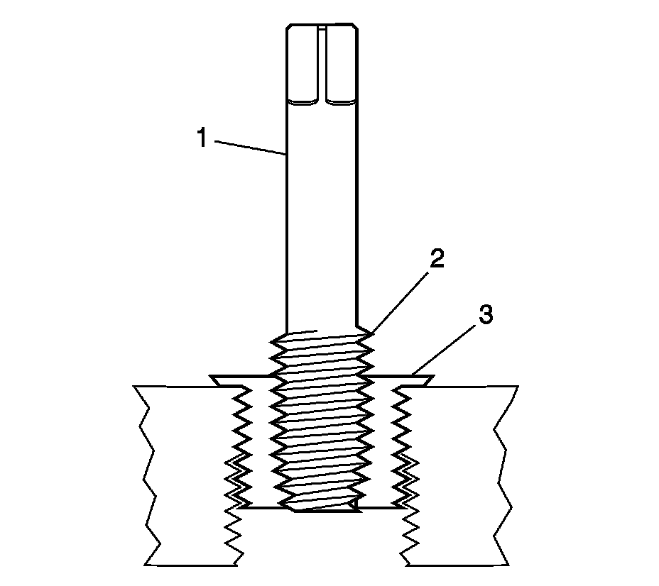 13. Continue to rotate the driver installation tool (1) until the top of the threaded section (2) is level with the top of the insert (3).