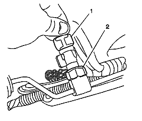 3. Disconnect the electrical connector (1) from the A/C refrigerant pressure sensor (2).