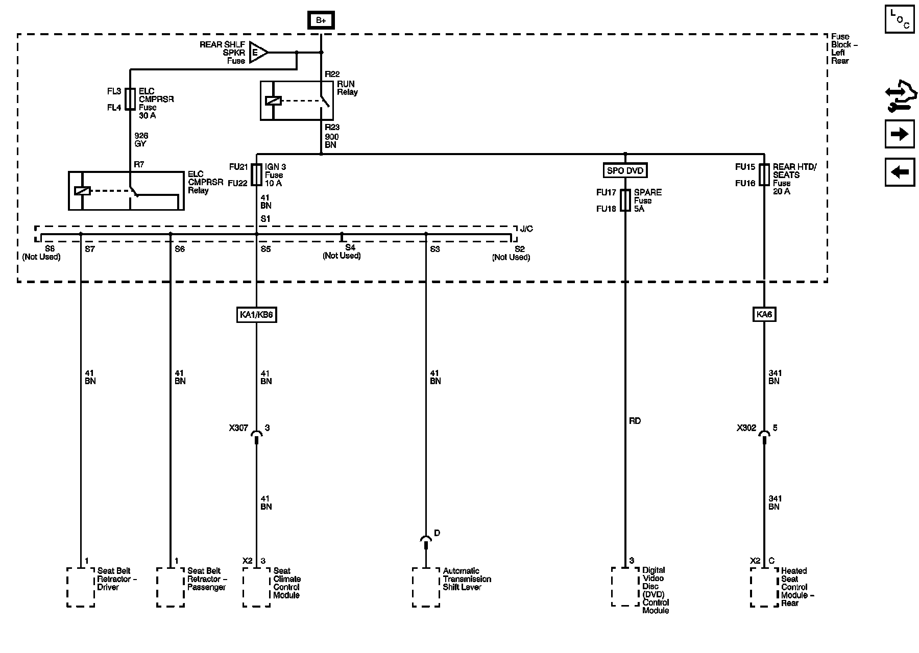 ELC CMPRSR, IGN 3, and REAR HTD/SEATS Fuses
