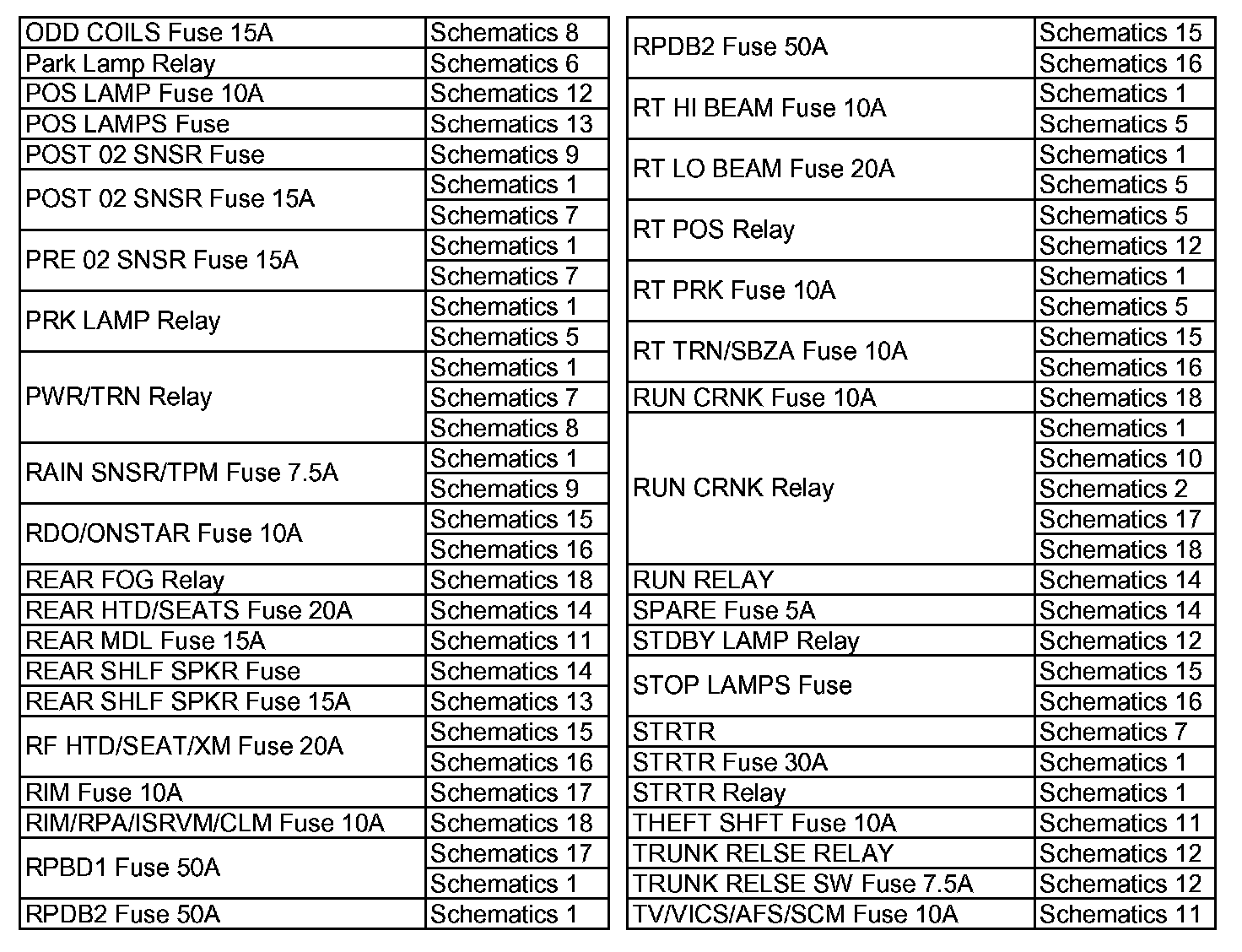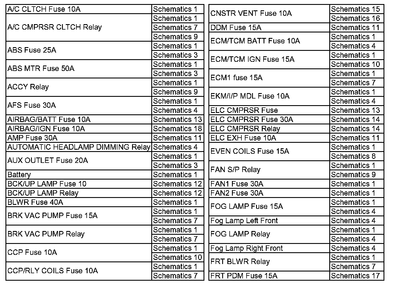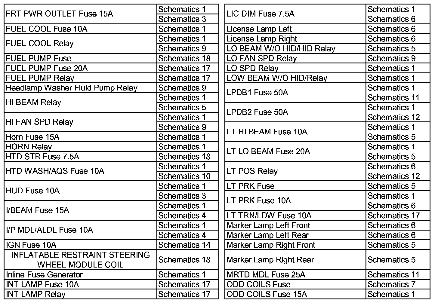Wiring Schematic Index