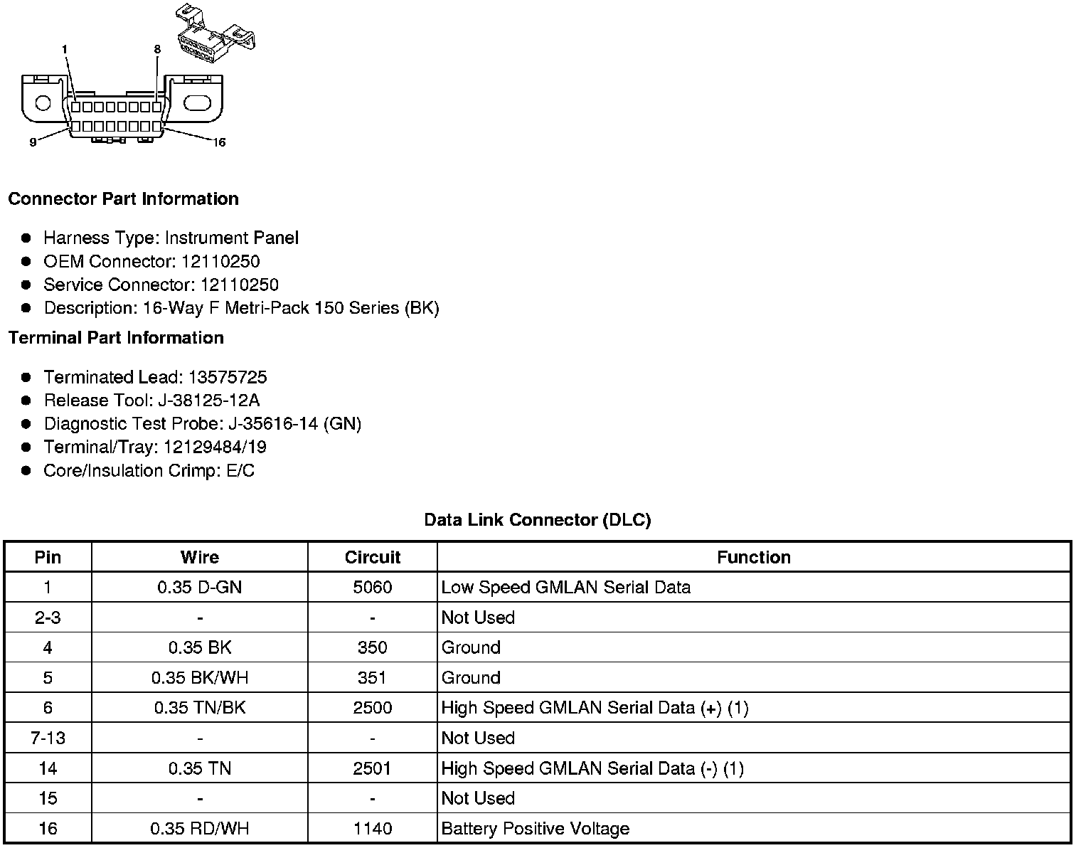 Data Link Connector: Diagrams
