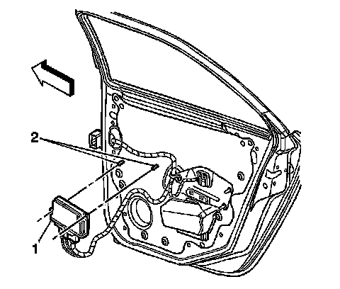 1. Remove the door trim panel. Refer to Rear Side Door Trim Panel Replacement (Rear Side Door Trim Panel Replacement) or Front Side Door Trim Panel Replacement (Front Side Door Trim Panel Replacement).
