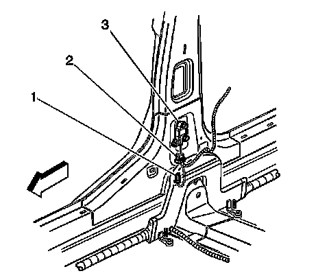 3. Remove the center pillar trim panel. Refer to Center Pillar Garnish Molding Replacement (Center Pillar Garnish Molding Replacement).