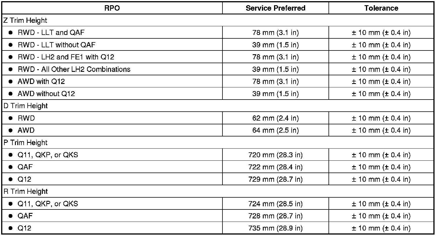Trim Height Specifications