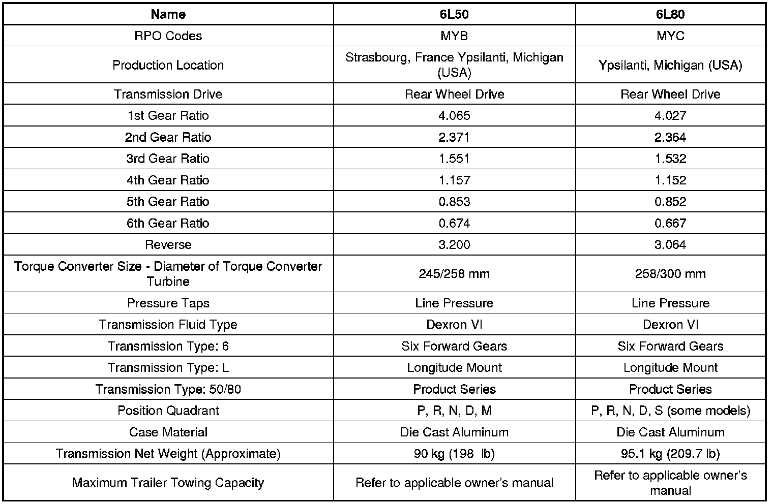 Transmission General Specifications