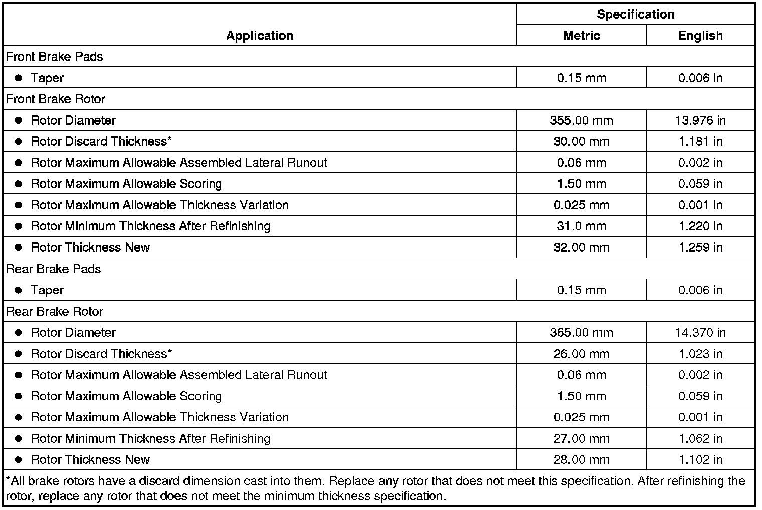 Disc Brake Component Specifications (J56)