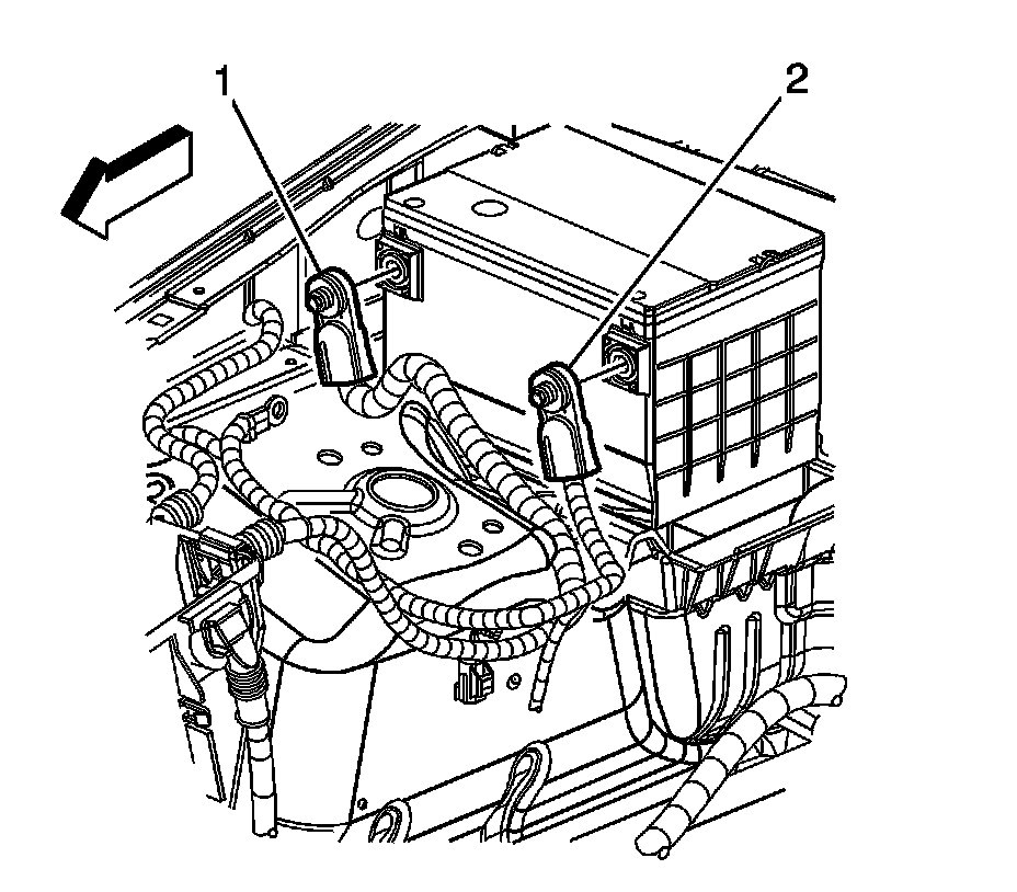 1. Disconnect the battery negative cable (2). Refer to Battery Negative Cable Disconnection and Connection (With Side Post) (Battery Negative Cable Disconnection and Connection (With Side Post))Battery Negative Cable Disconnection and Connection (With Top Post) (Battery Negative Cable Disconnection and Connection (With Top Post)).