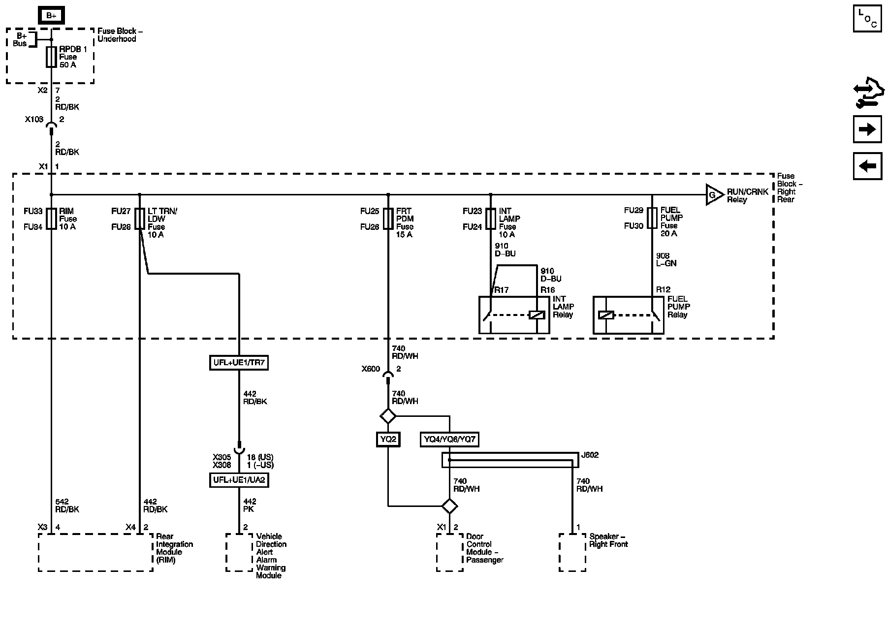 FRT PDM, FUEL PUMP, INT LAMP, LT TRN/LDW, and RIM Fuses