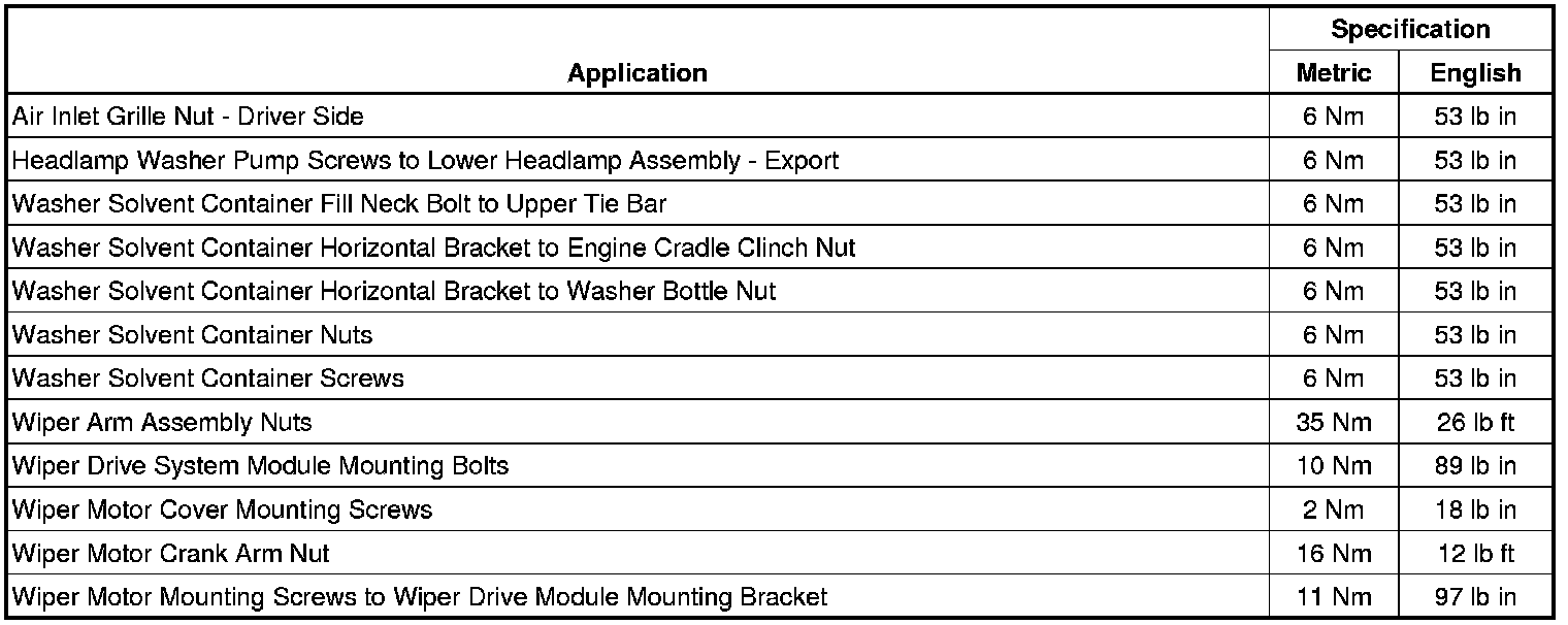 Wiper and Washer Systems: Specifications