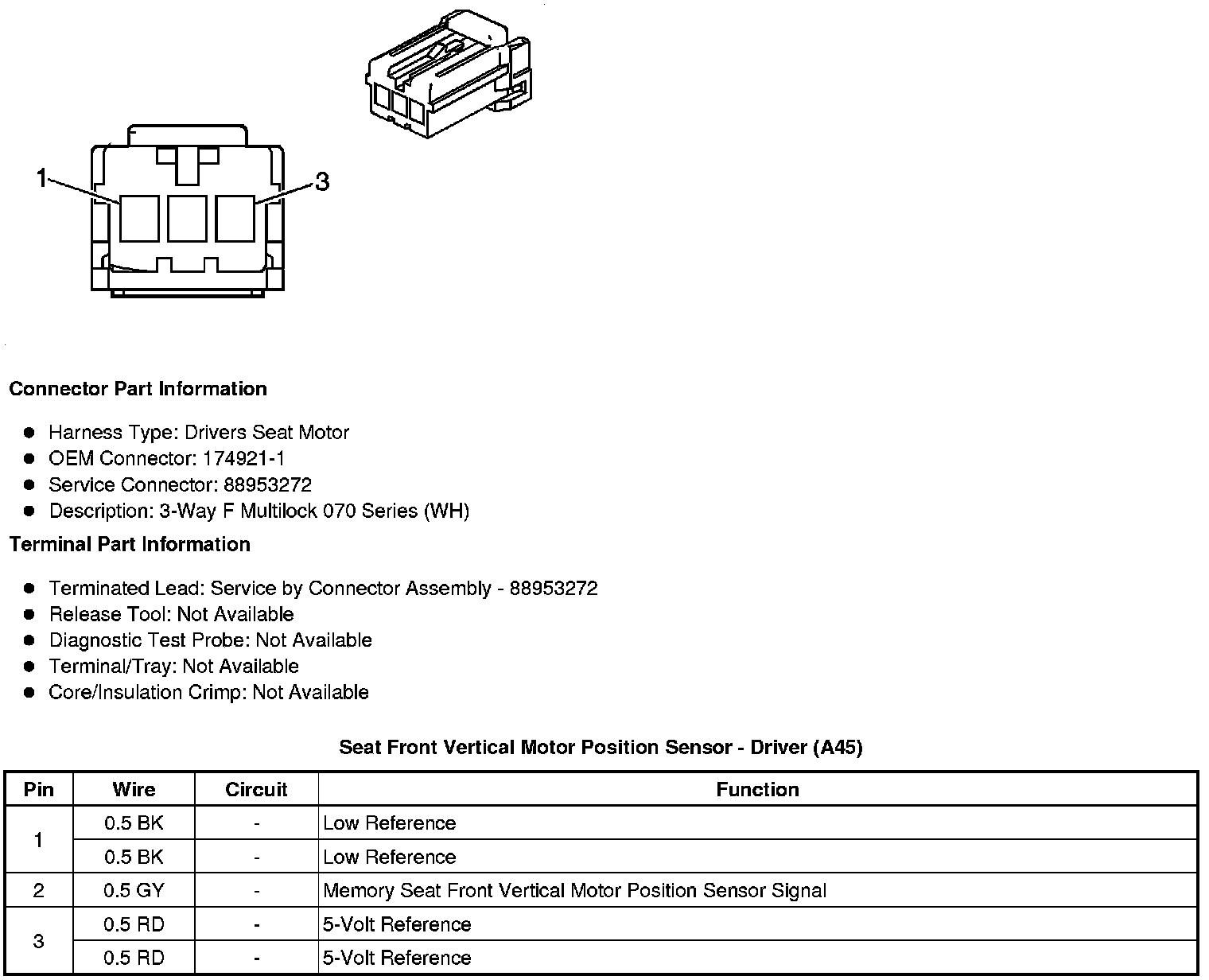 Seat Front Vertical Motor Position Sensor - Driver (A45)