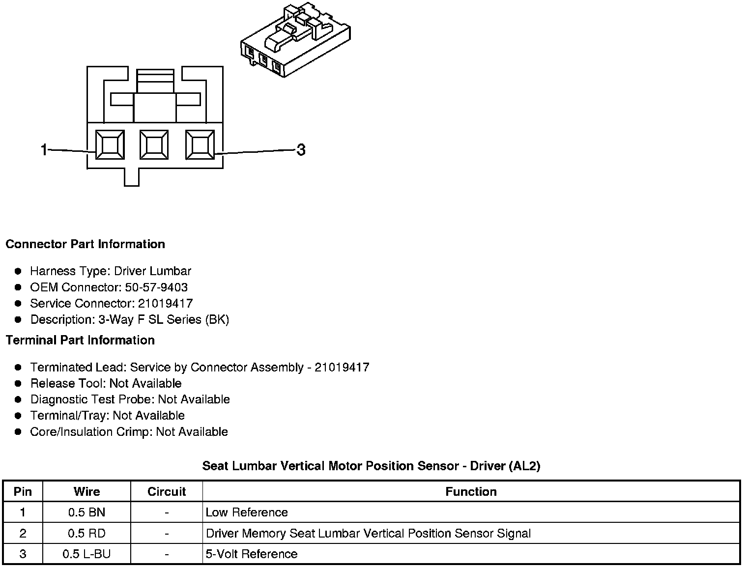 Seat Lumbar Vertical Motor Position Sensor - Driver (AL2)