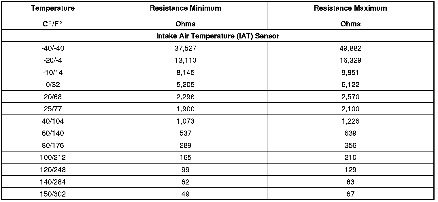 Temperature Versus Resistance - Intake Air Temperature Sensor