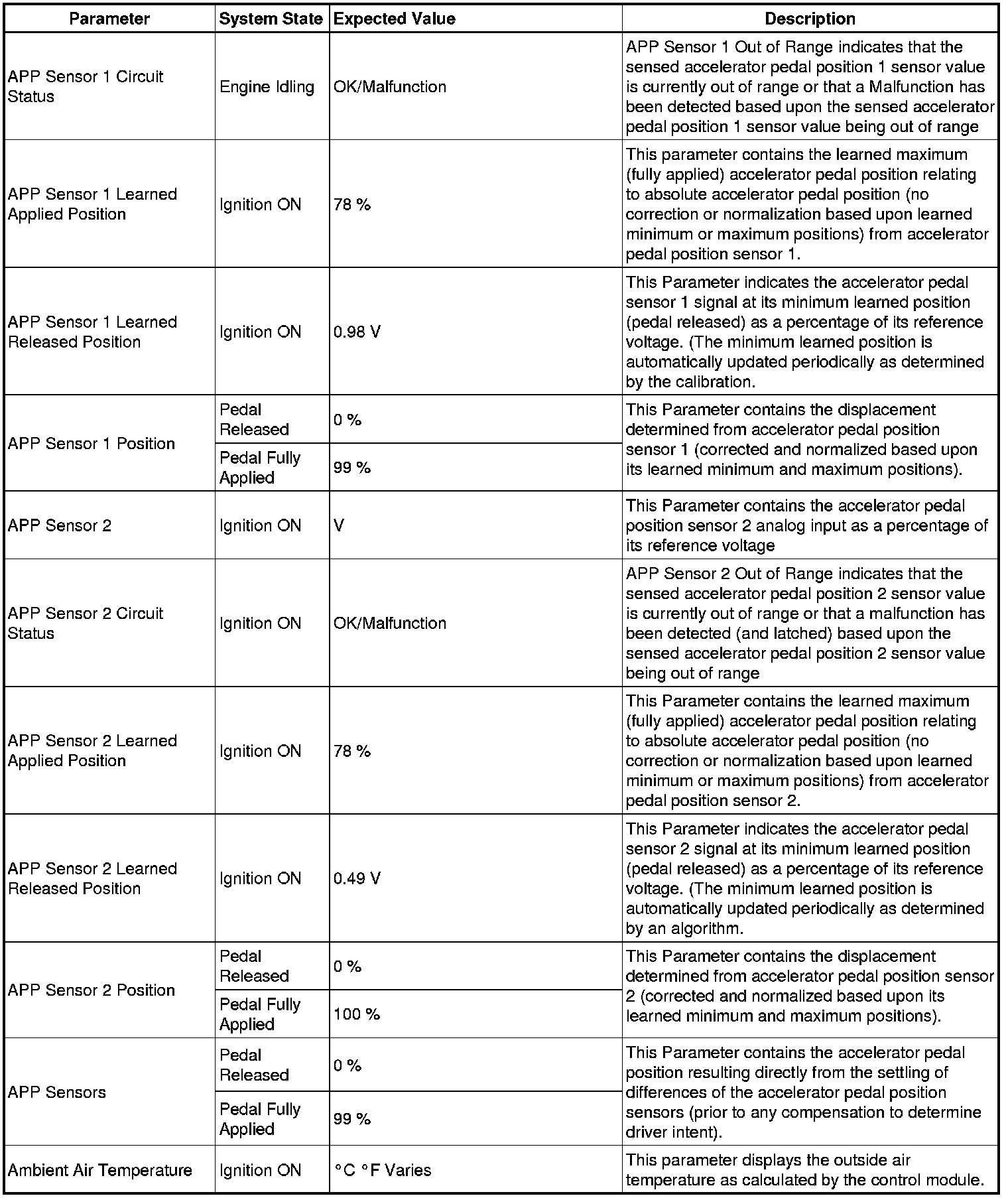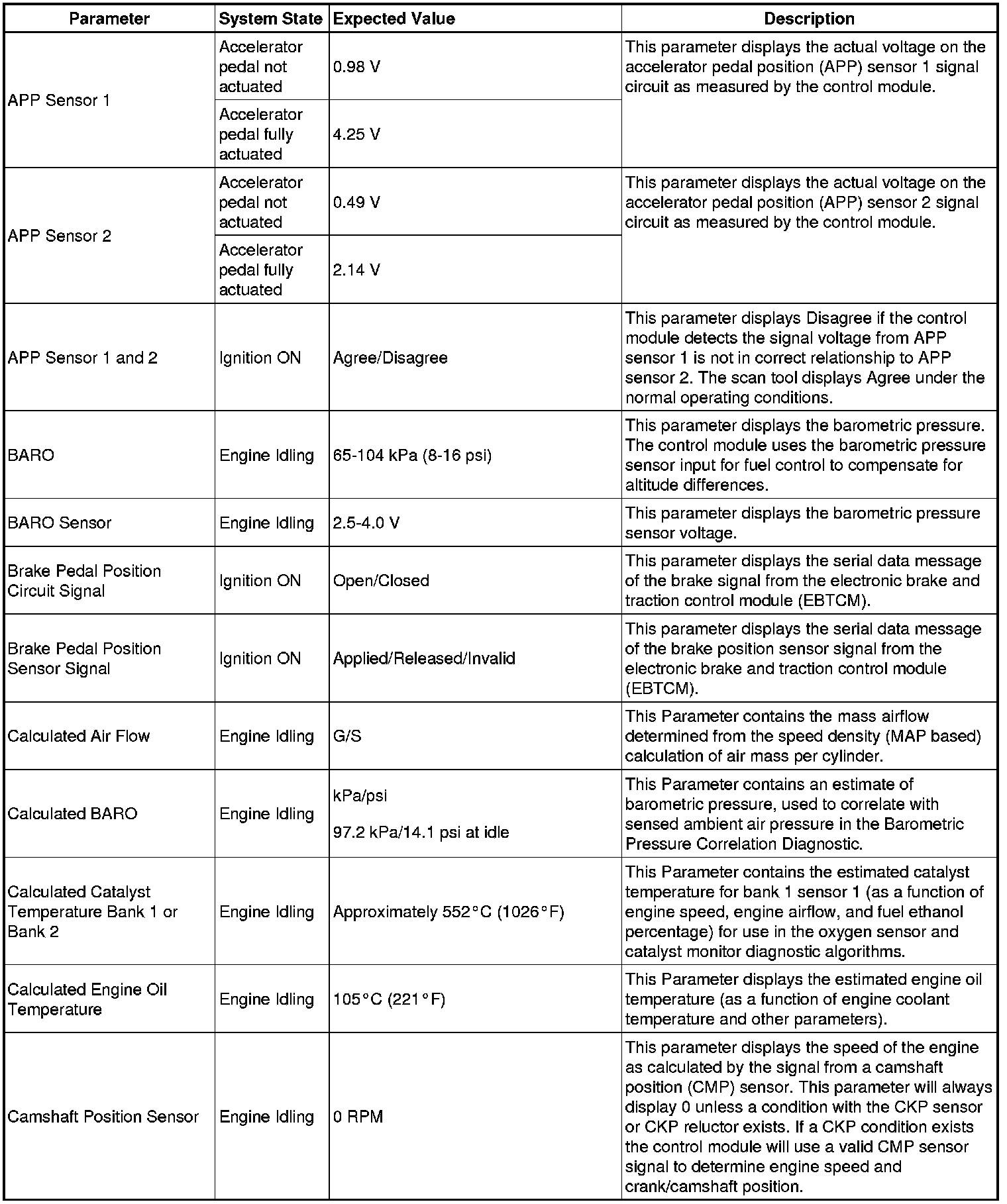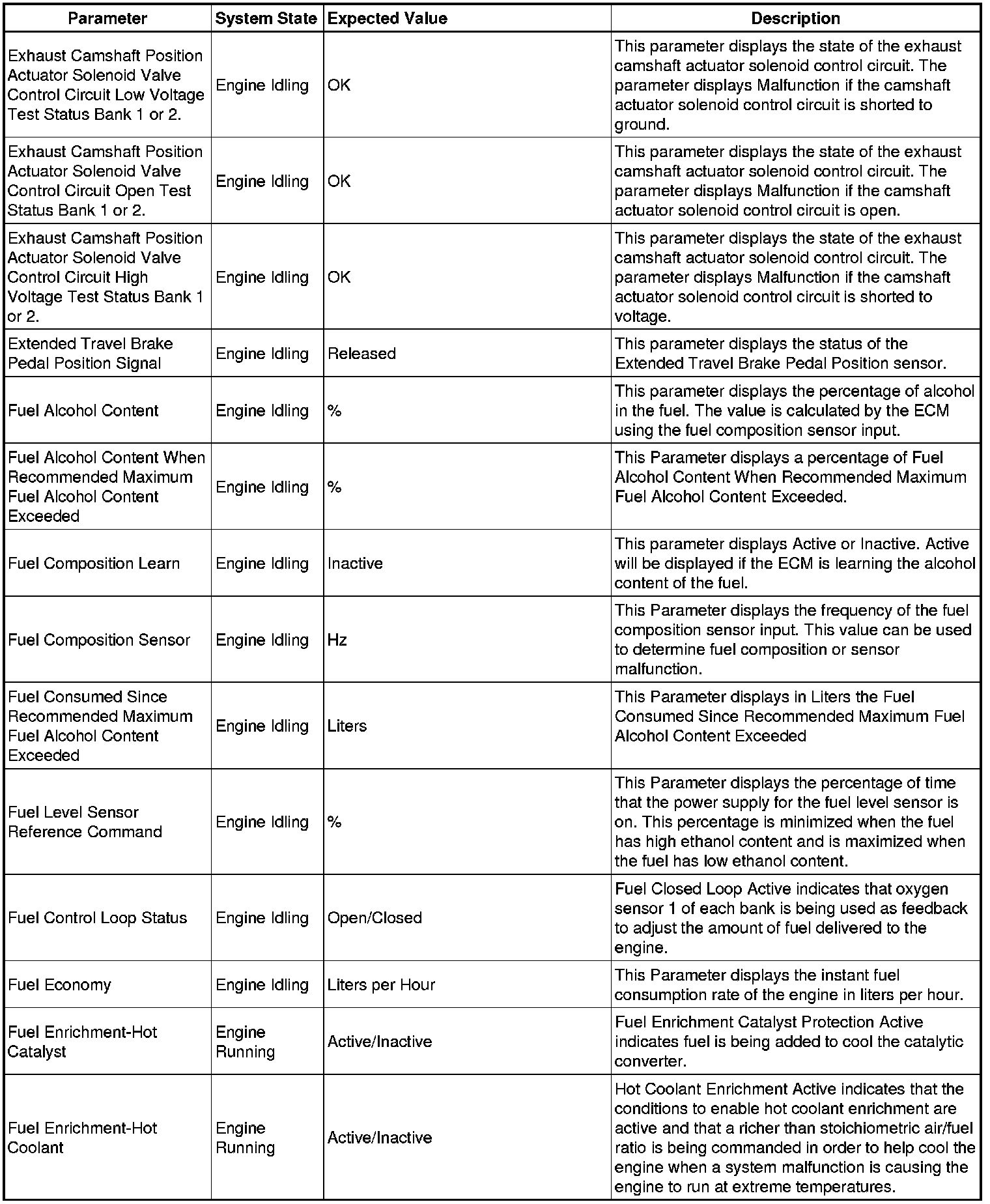 The Engine Control Module Scan Tool Data List contains all engine-related parameters that are available on the scan tool. The list is arranged in alphabetical order. A given parameter may appear in any one of the data lists, and in some cases may appear more than once, or in more than one data list in order to group certain related parameters together.