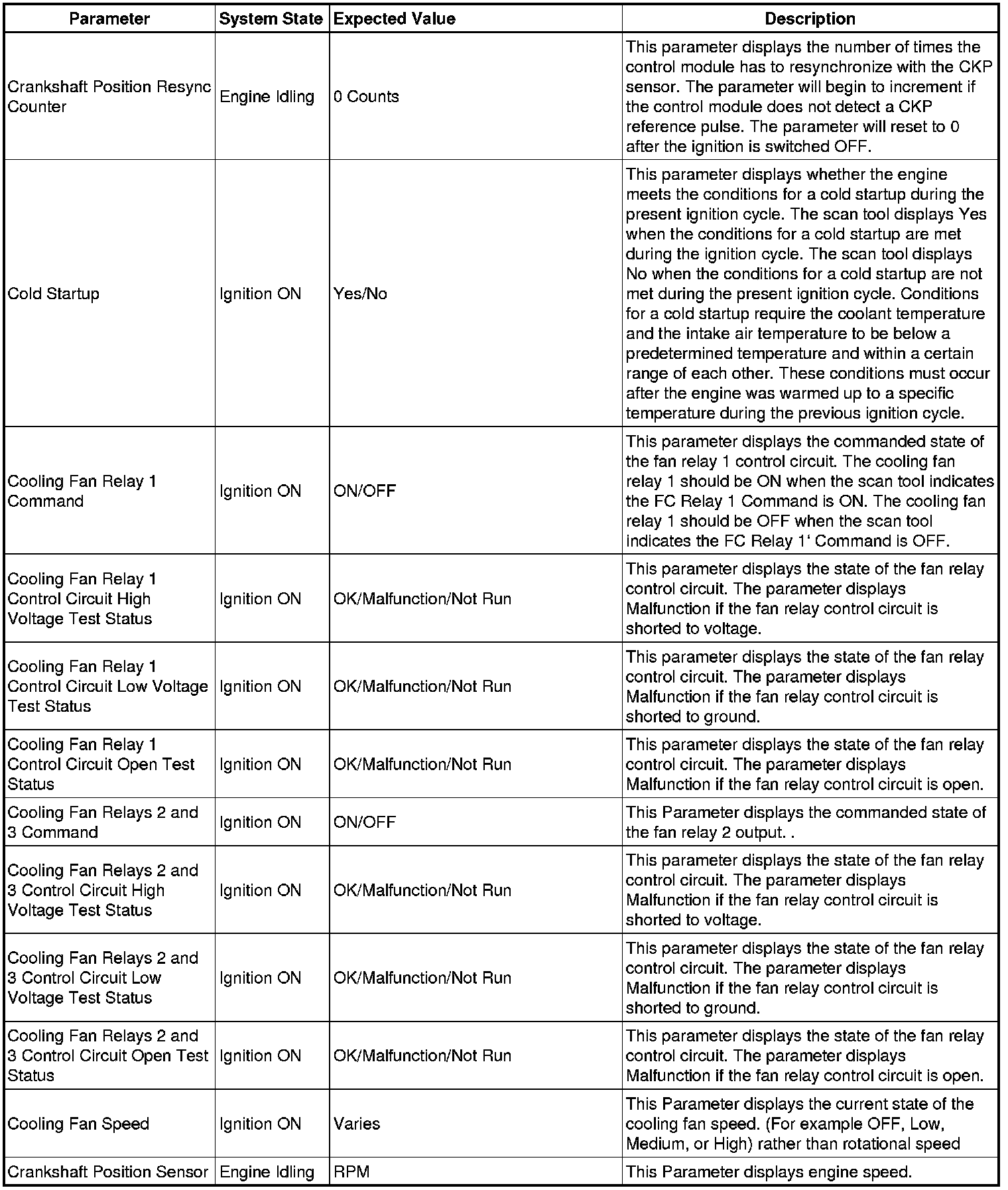 Only the parameters listed below are referenced in this service manual for use in diagnosis.